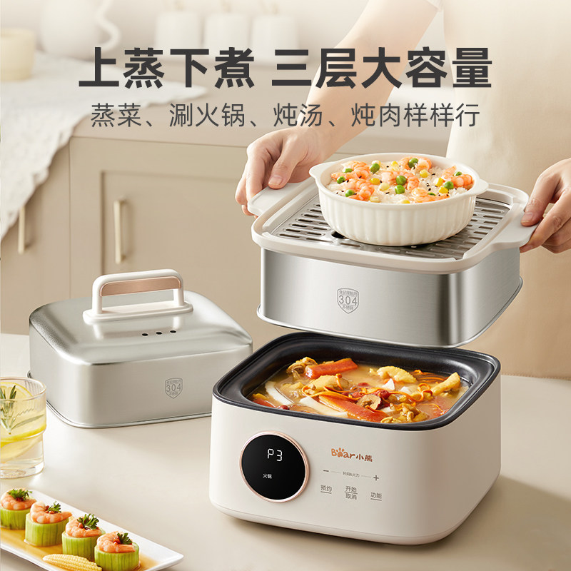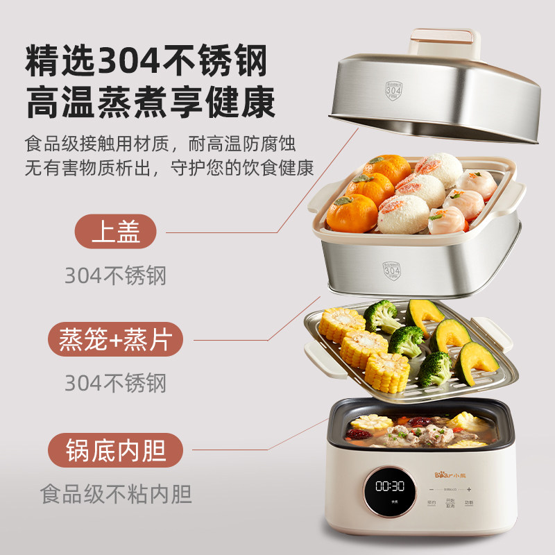小熊电蒸锅不锈钢家用多功能三层大容量全自动智能预约蒸煮烹饪机
