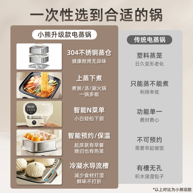 小熊电蒸锅304不锈钢蒸煮一体锅