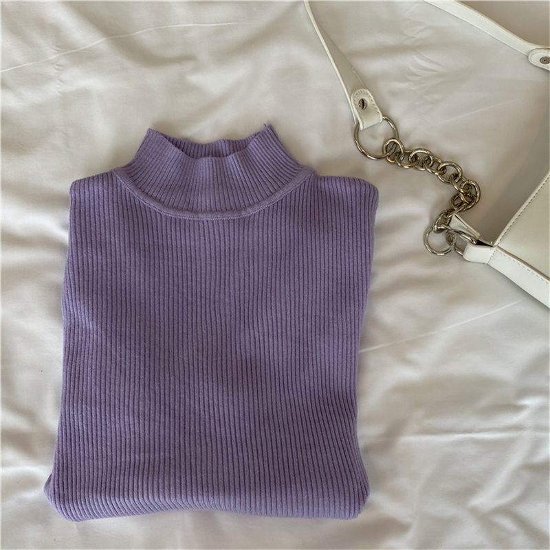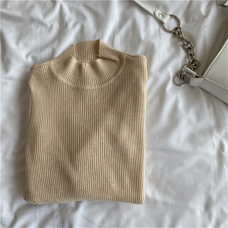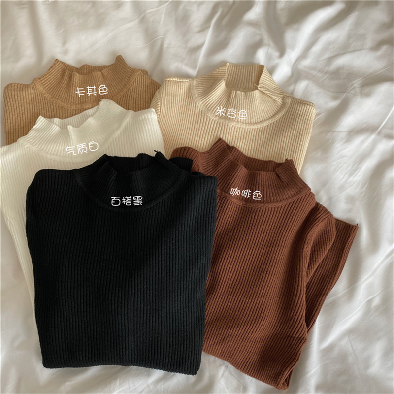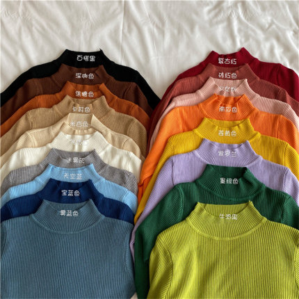 秋冬洋气内搭黑色长袖春秋修身毛衣中领针织衫上衣半高领打底衫女