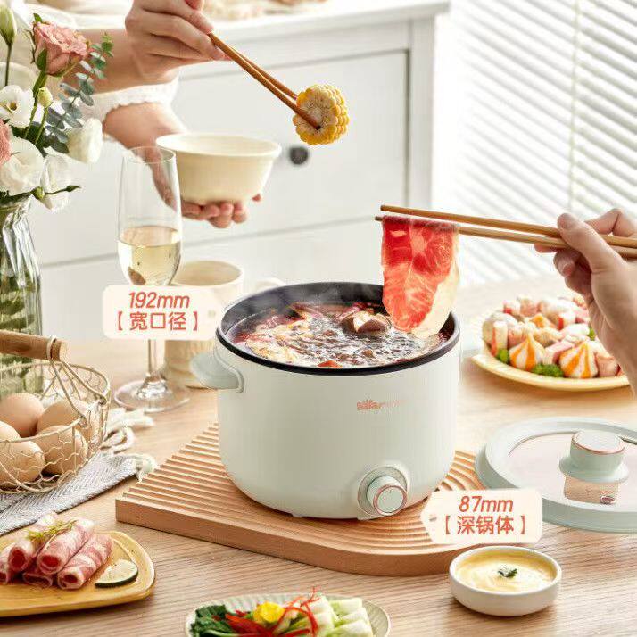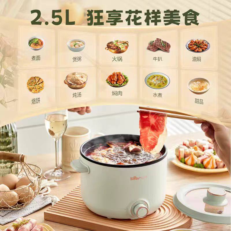 小熊电煮锅电火锅多功能2.5L多功能迷你电热锅宿舍锅带蒸笼全新