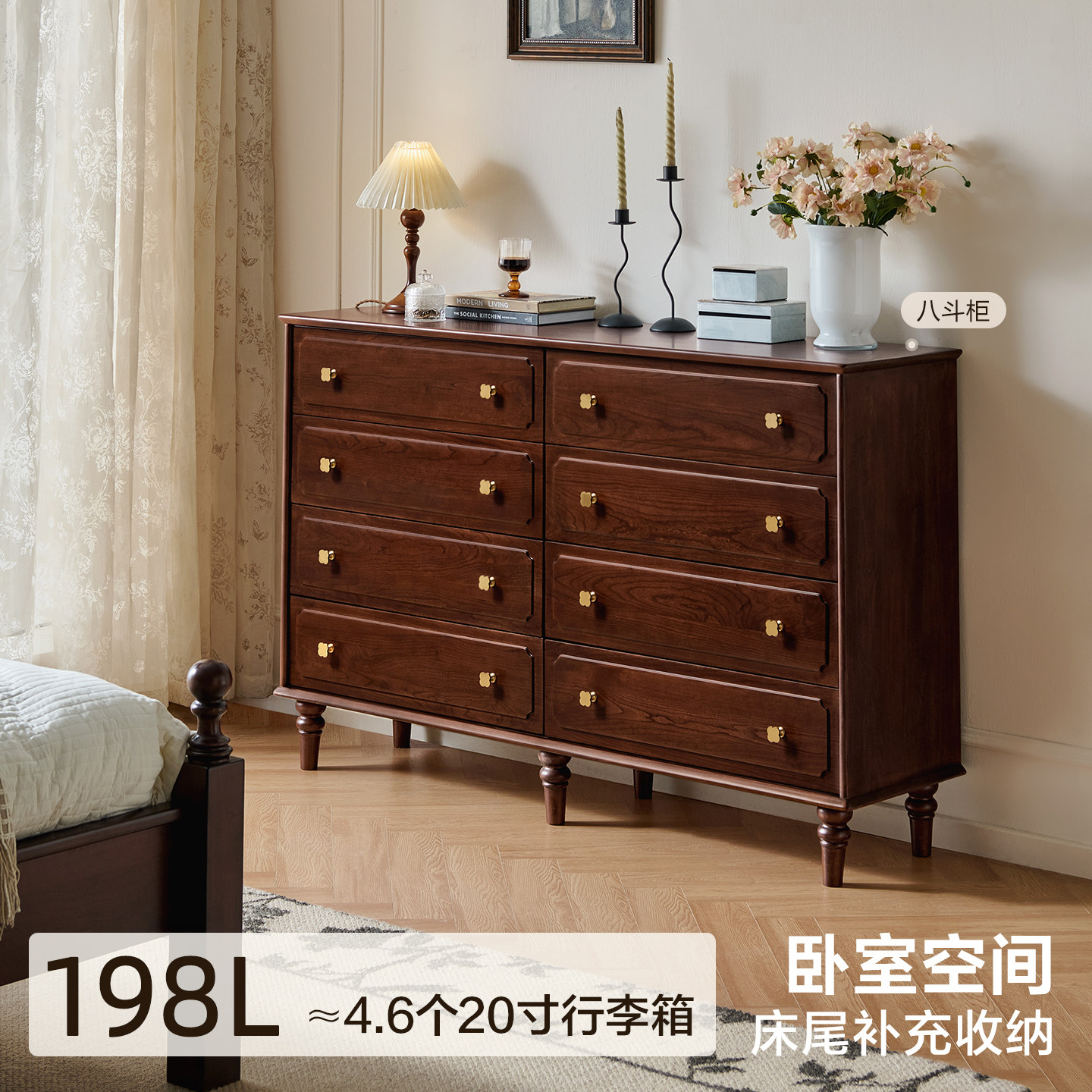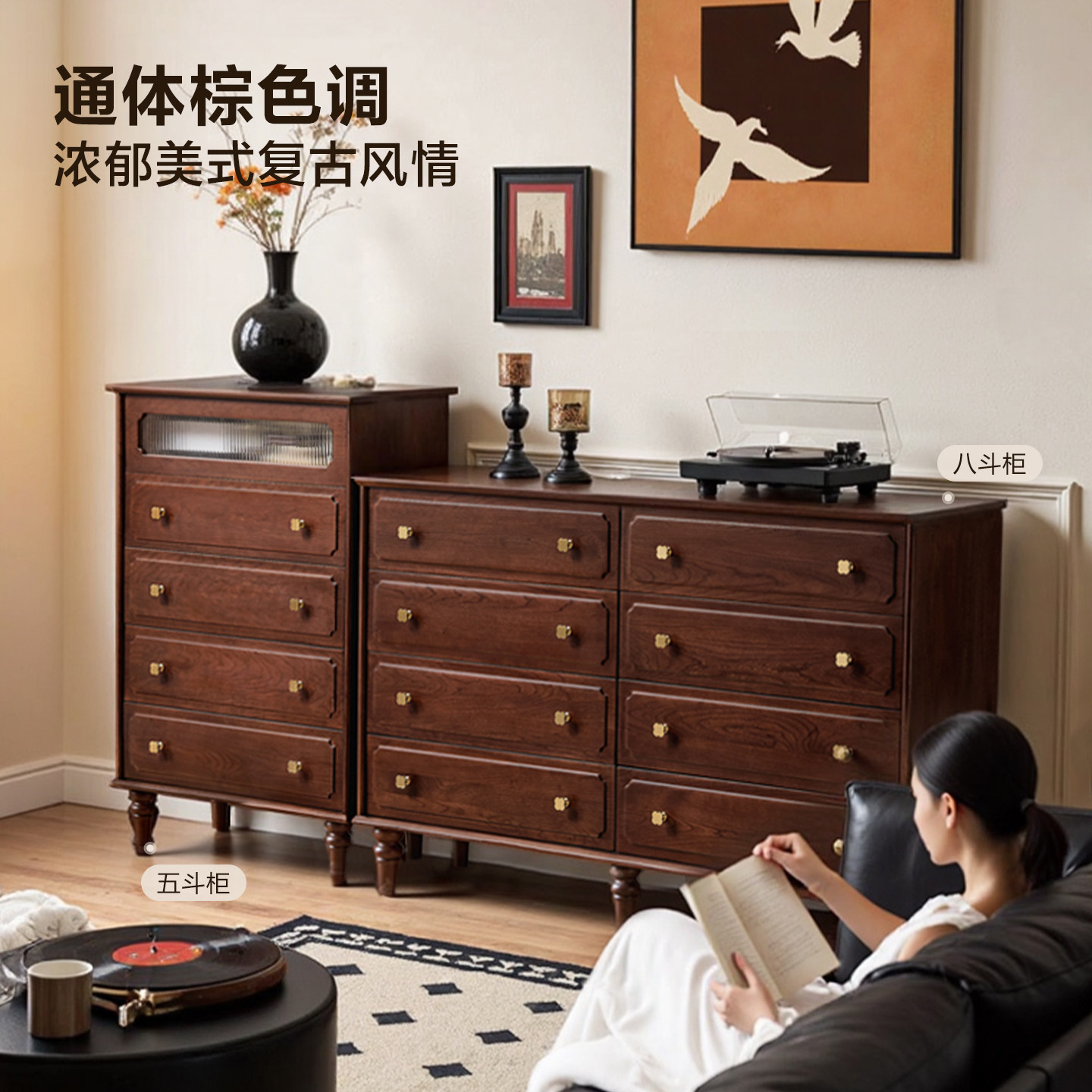 全友家居美式复古风实木五斗柜客厅靠墙储物柜卧室床尾柜抽屉柜
