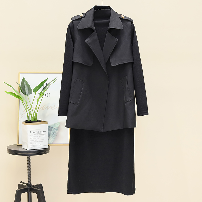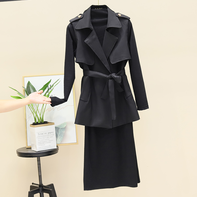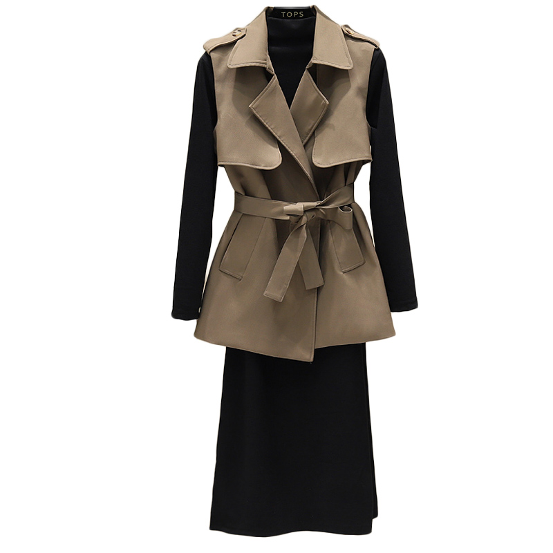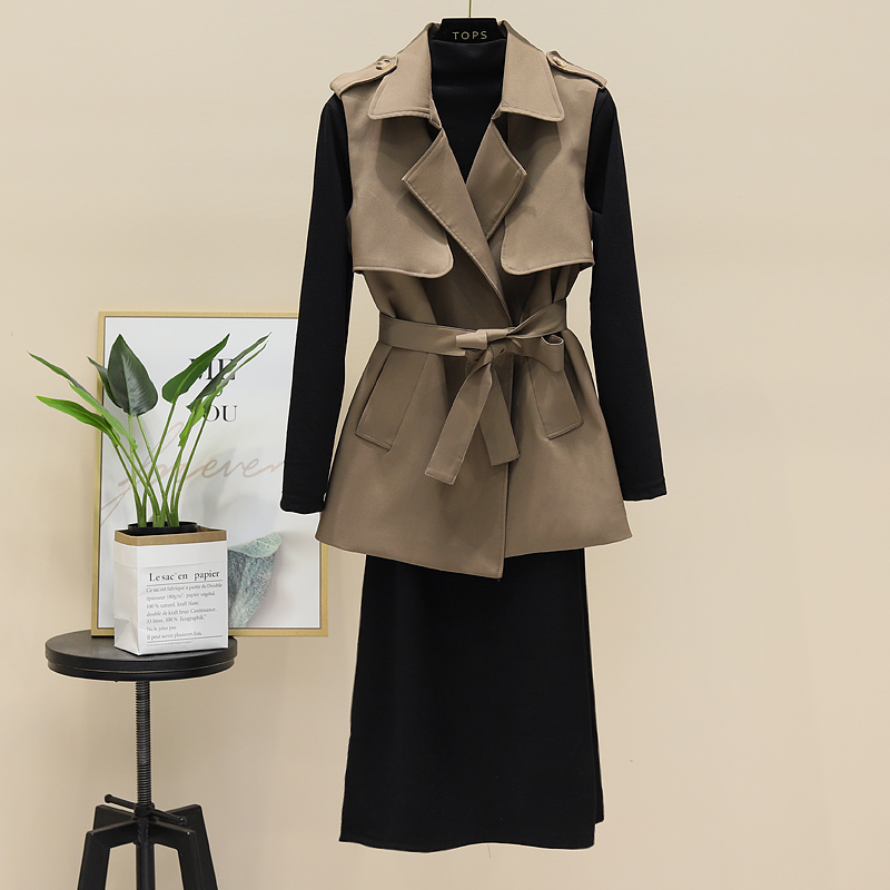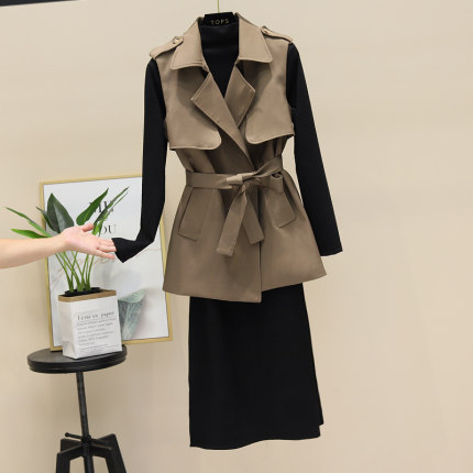 风衣马甲修身连衣裙套装春秋新款时尚气质收腰显瘦坎肩外套两件套