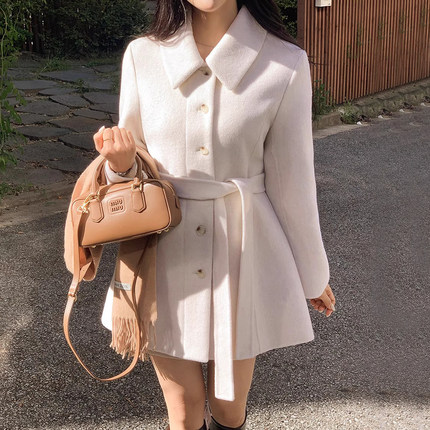 法式气质绑带收腰呢子外套大衣