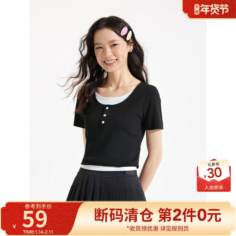 短T恤夏季热风2025年新款女士纽扣装饰假两件舒适简约休闲显瘦