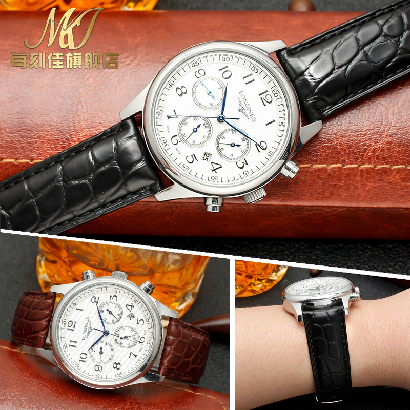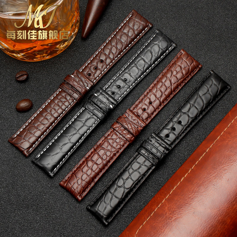鳄鱼皮表带真皮男女款蝴蝶扣代用天梭美度万国浪琴天王欧米茄手表