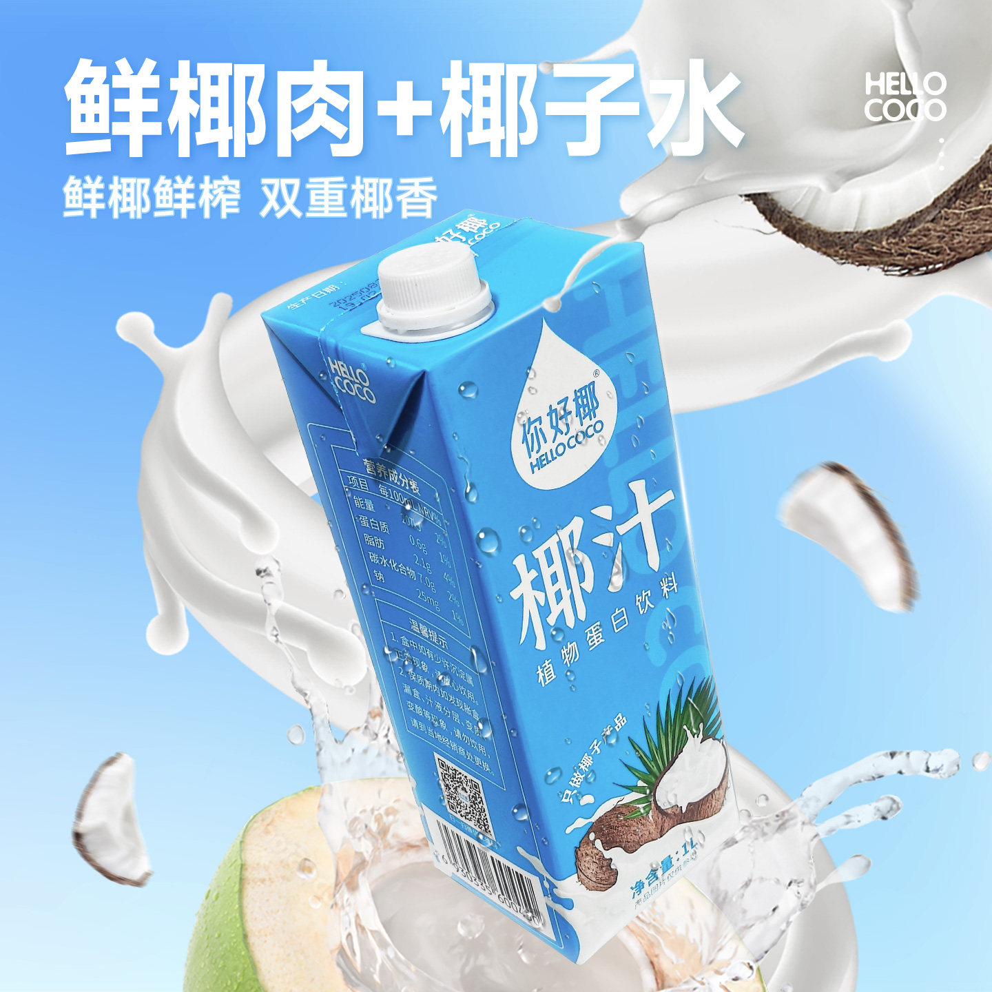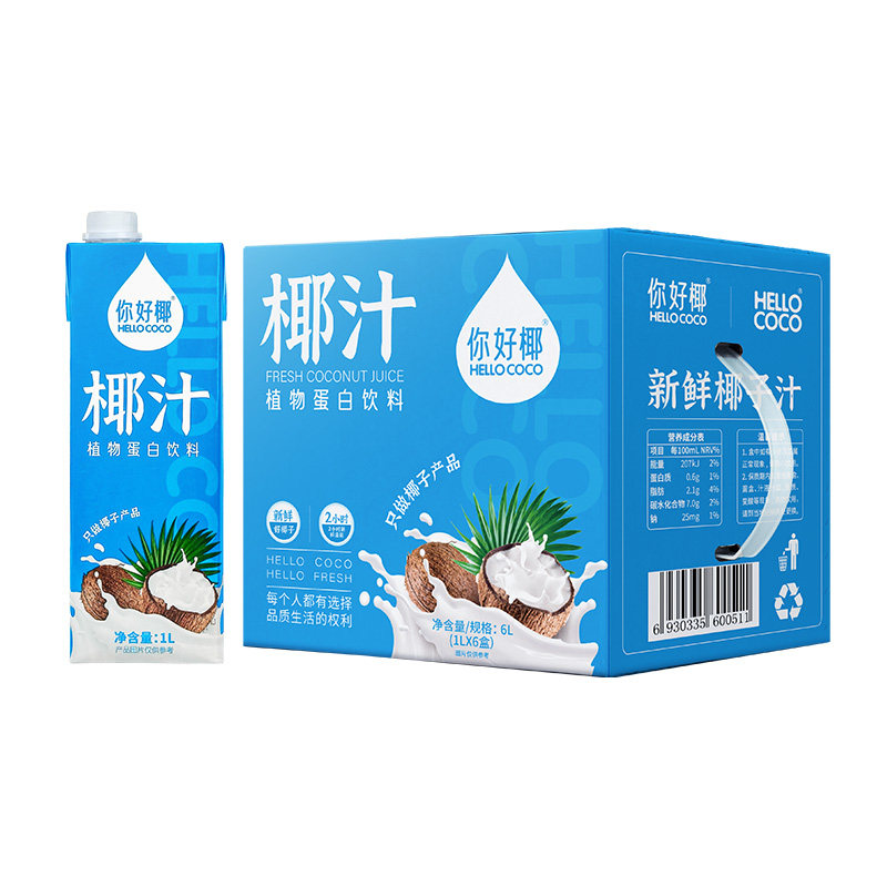 你好椰椰子汁1L大瓶装生榨新鲜椰奶孕妇儿童果汁植物蛋白饮料整箱