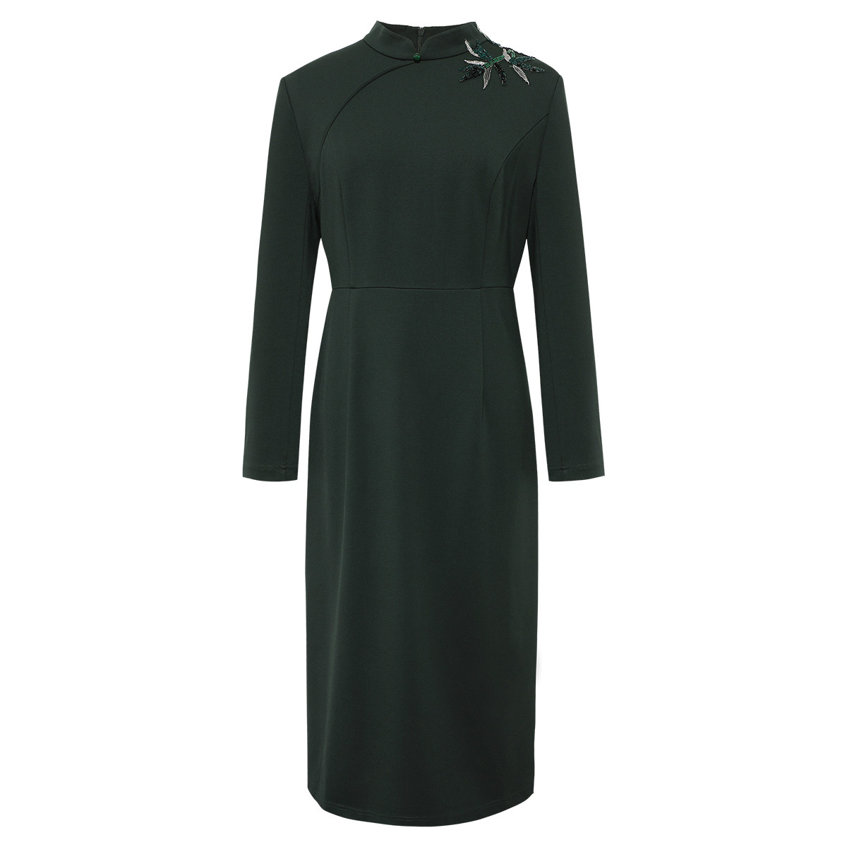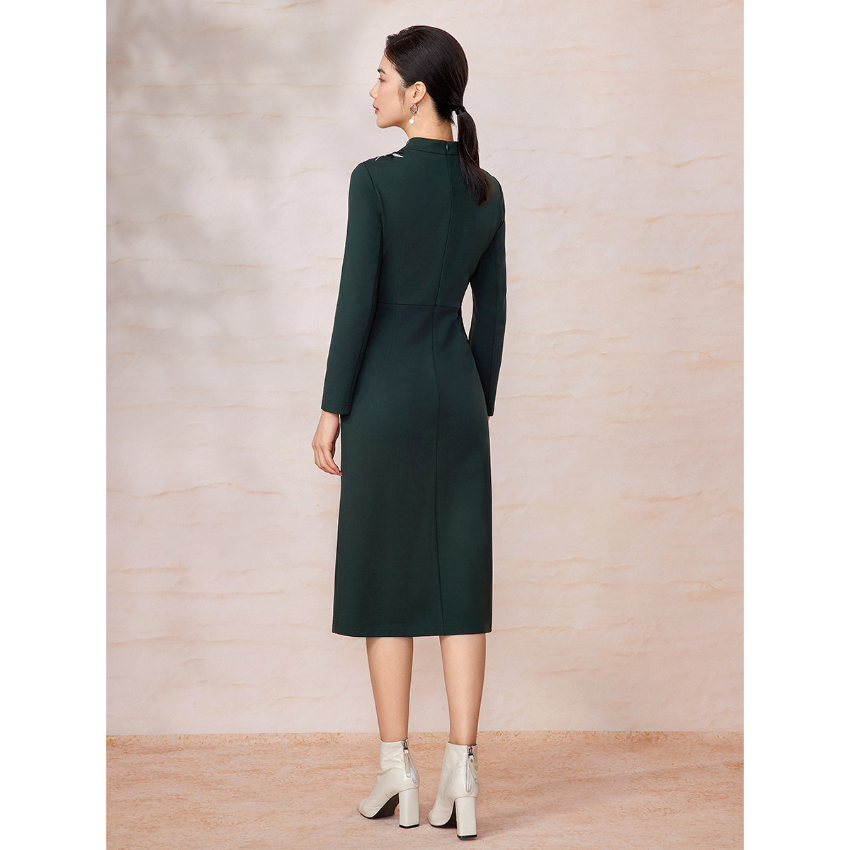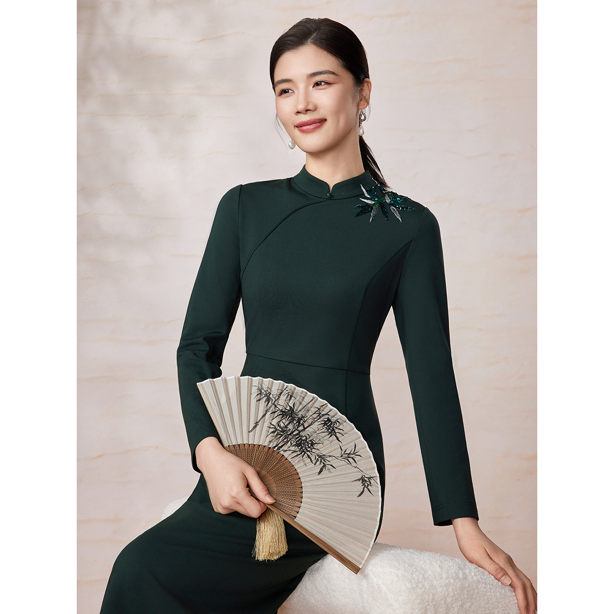 【复古国风】 BBLLUUEE/粉蓝衣橱2025冬装新款竹韵绣花针织连衣裙
