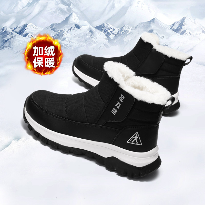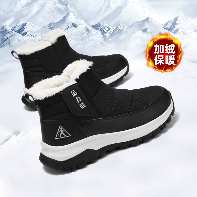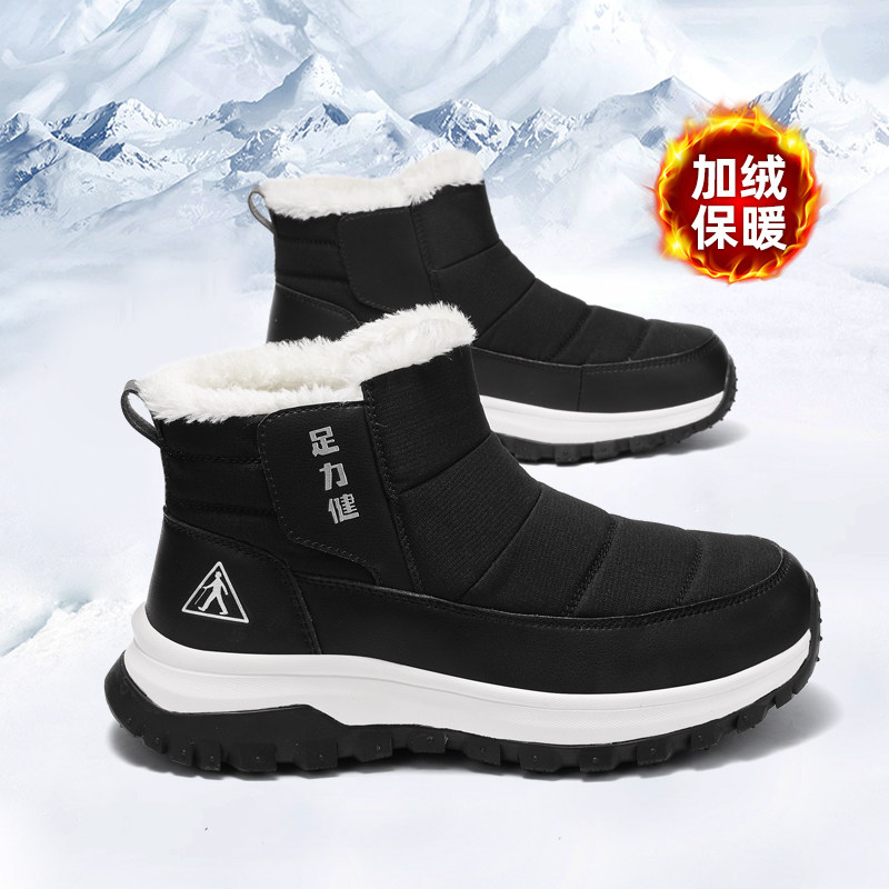 足力健旗舰店老人鞋中年爸爸2025冬季加绒加厚保暖软底雪地靴男鞋