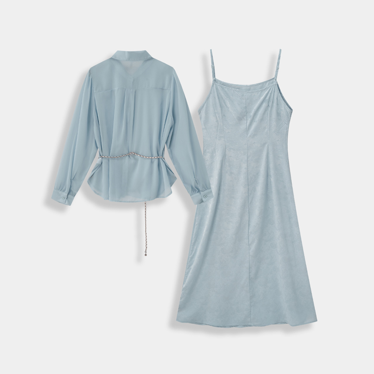 IEF/爱依服【大码女装】气质套装2025秋新款衬衫吊带中长裙两件套