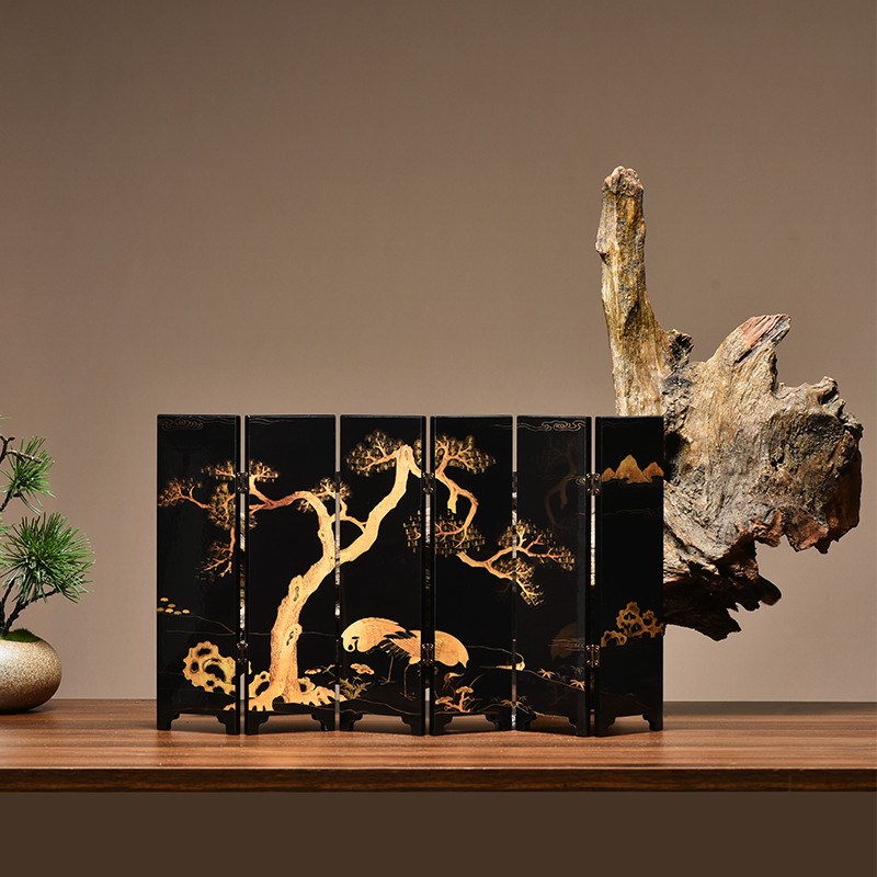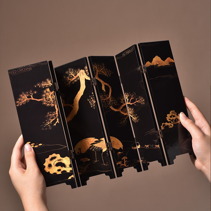 茶空间文创双面小屏风摆t件仿古复古茶台漆器摆件茶道配件礼盒装