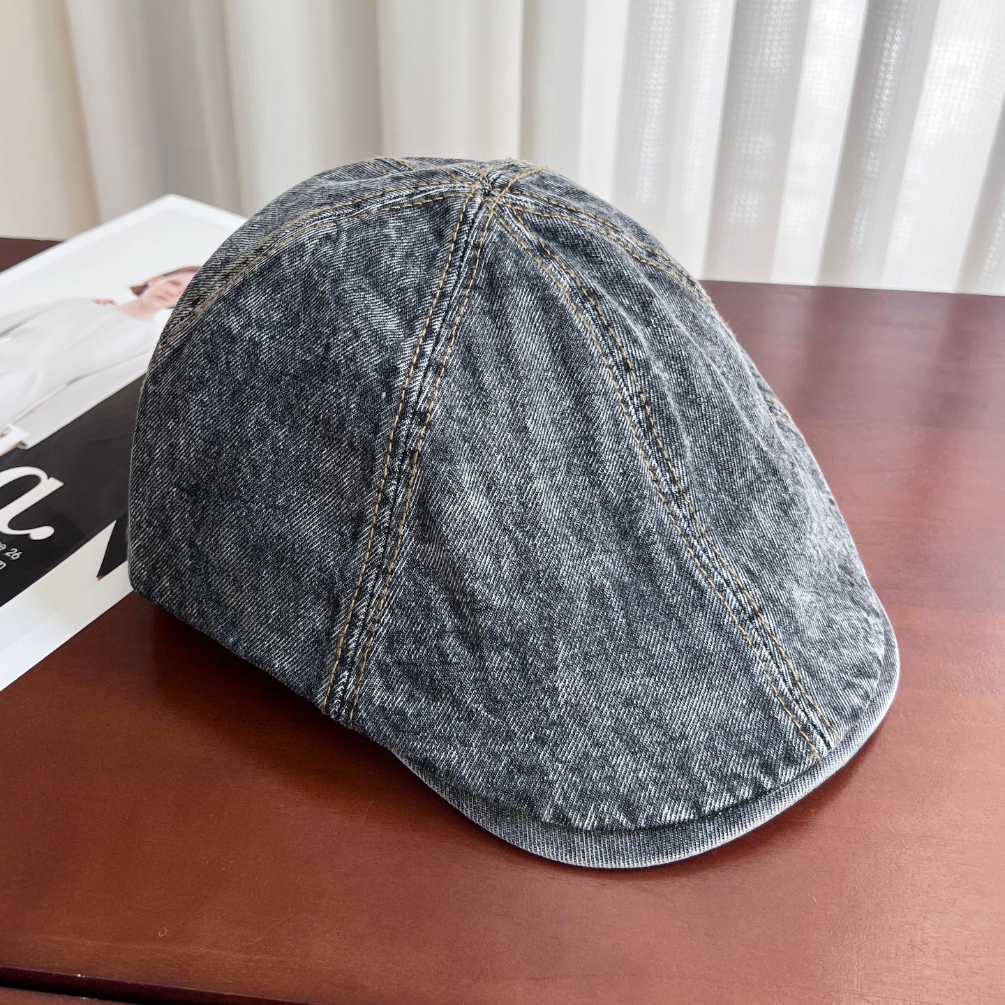 2025新款水洗牛仔前进帽女秋冬季复古鸭舌帽时尚百搭显脸小贝雷帽