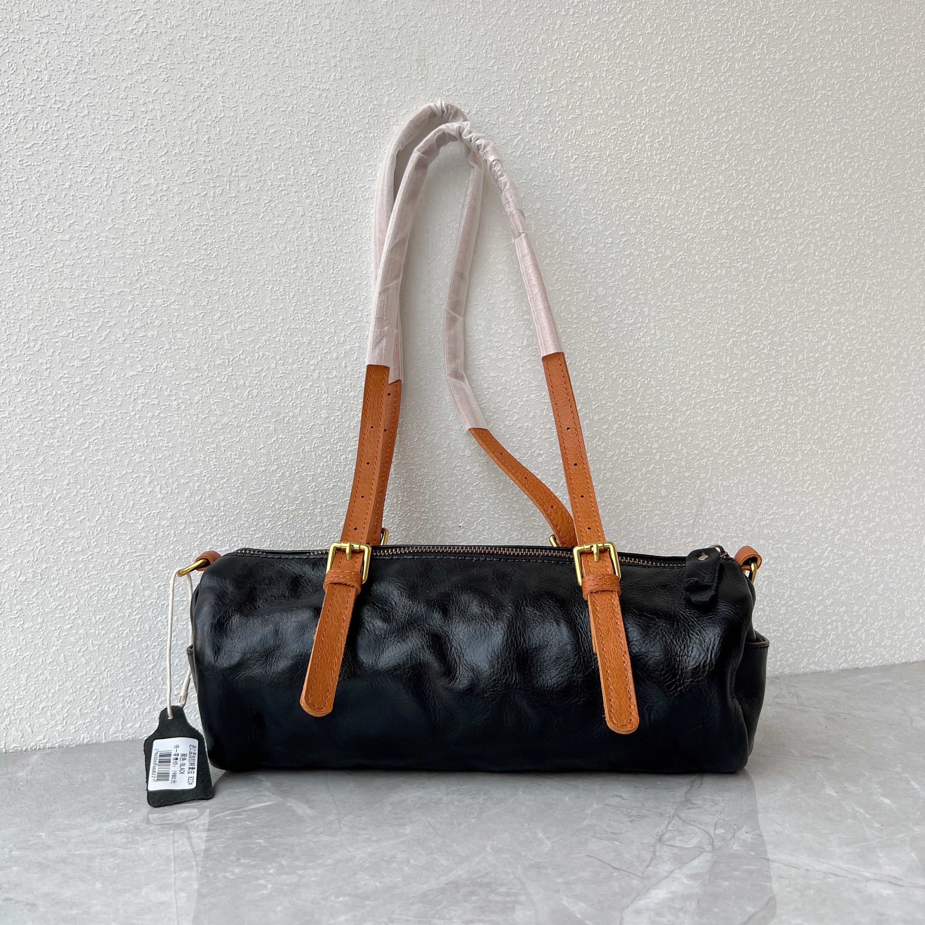 ~进口树膏牛皮~外贸订单高品质欧美时尚圆筒包复古真皮质感腋下包