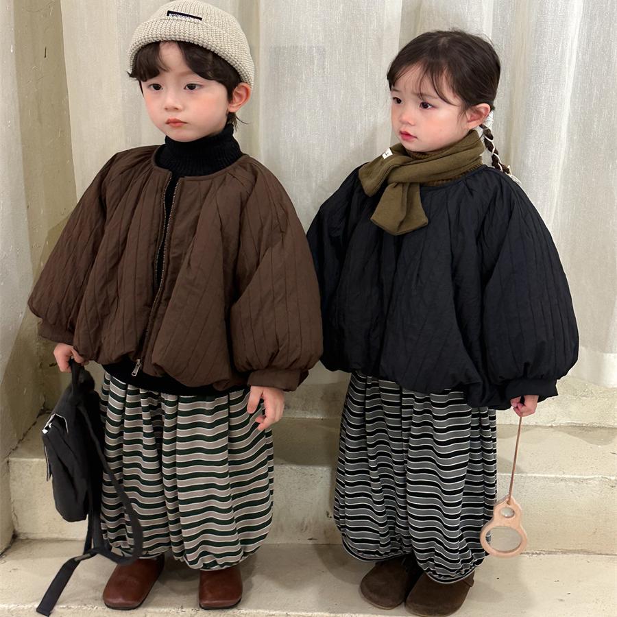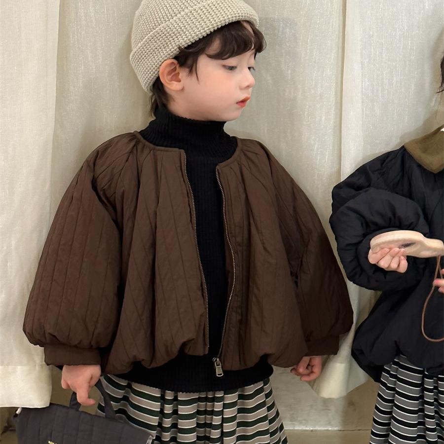 儿童韩版宽松加厚棉服冬季新品男女宝宝纯色泡泡袖棉衣夹棉外套潮