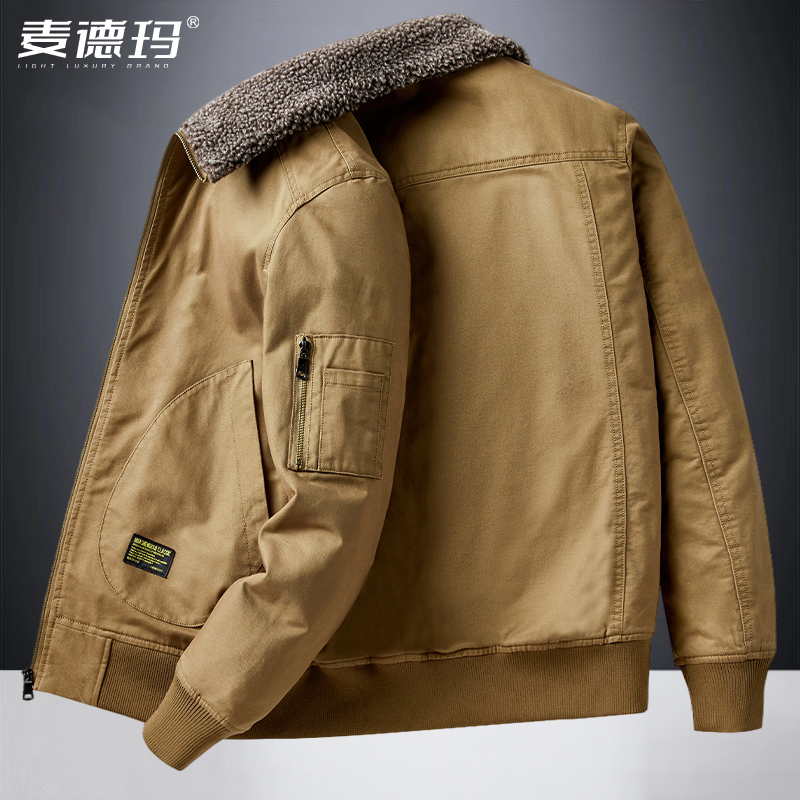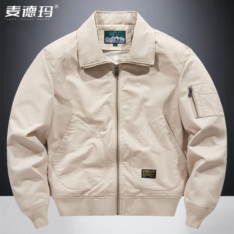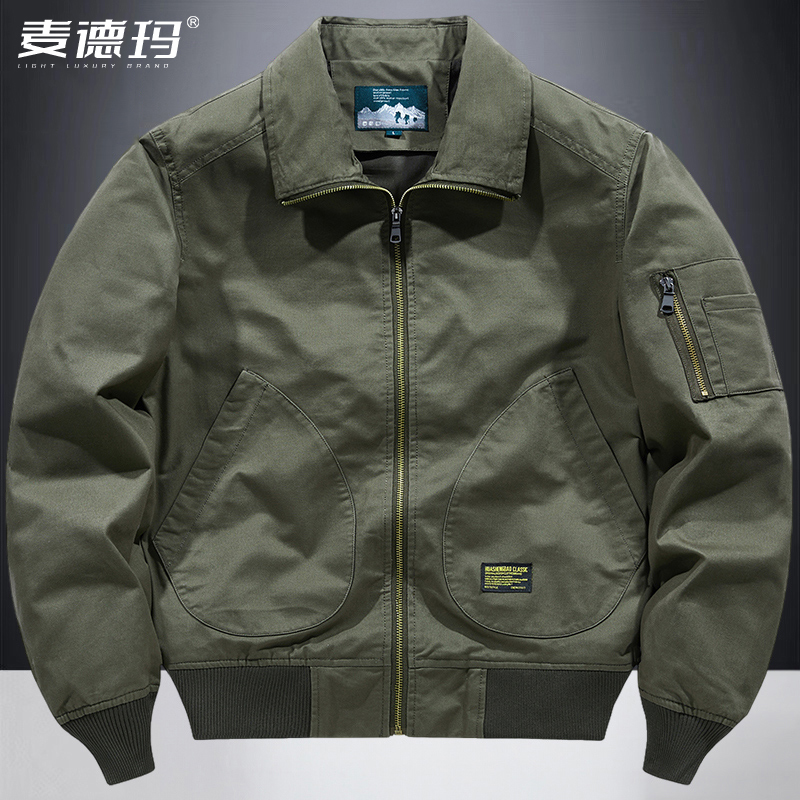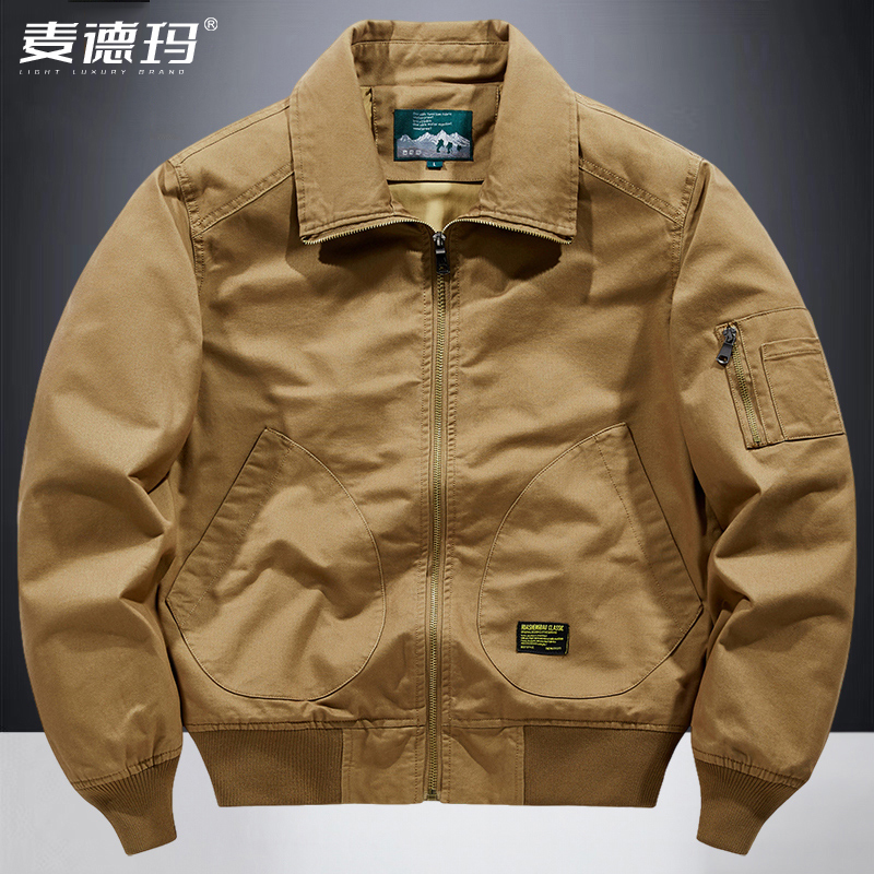 纯棉水洗美式飞行员夹克男士春秋季中年爸爸翻领工装宽松休闲外套