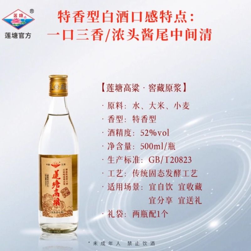 莲塘窖藏原浆52度500ml特香型白酒 固态高温大曲
