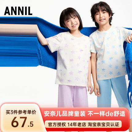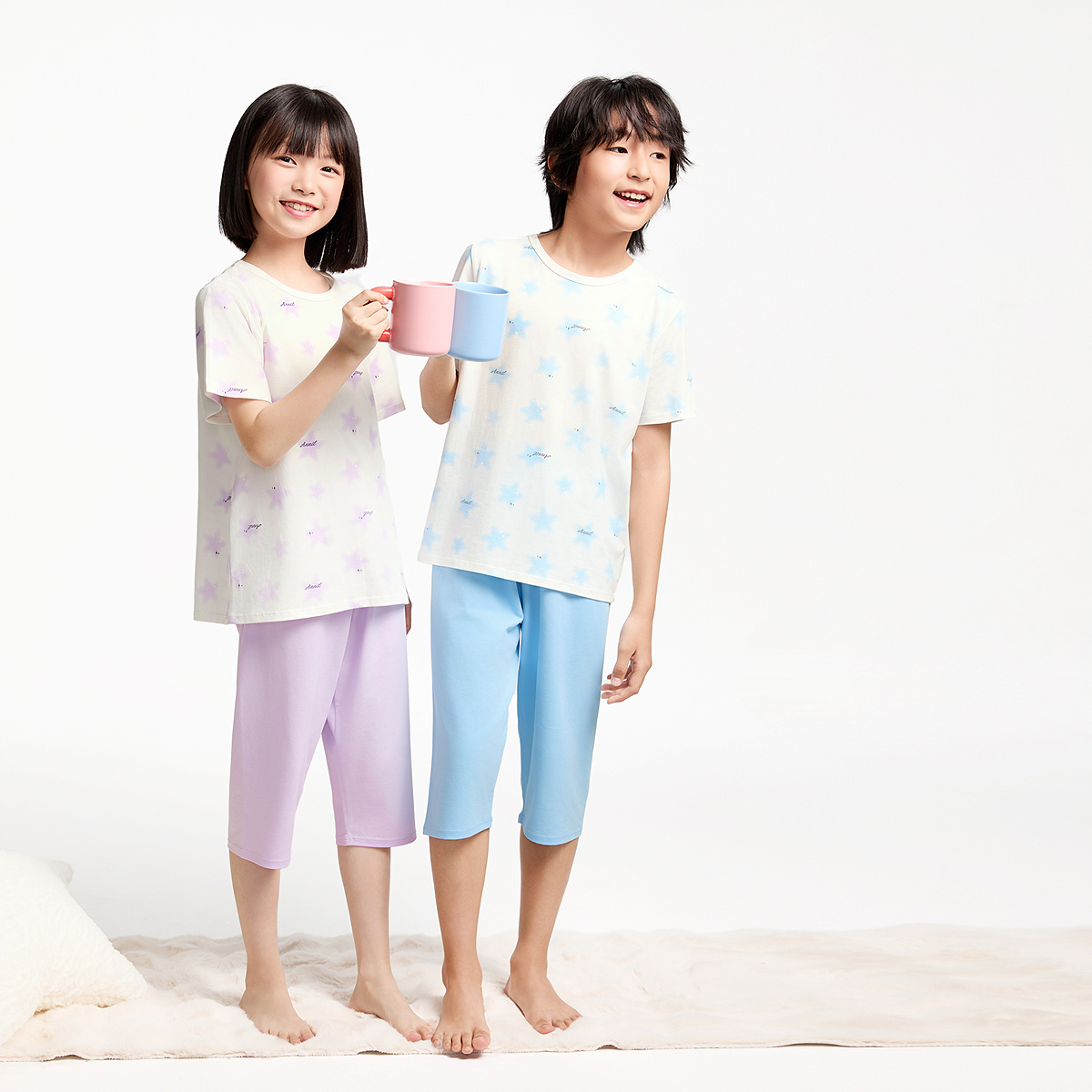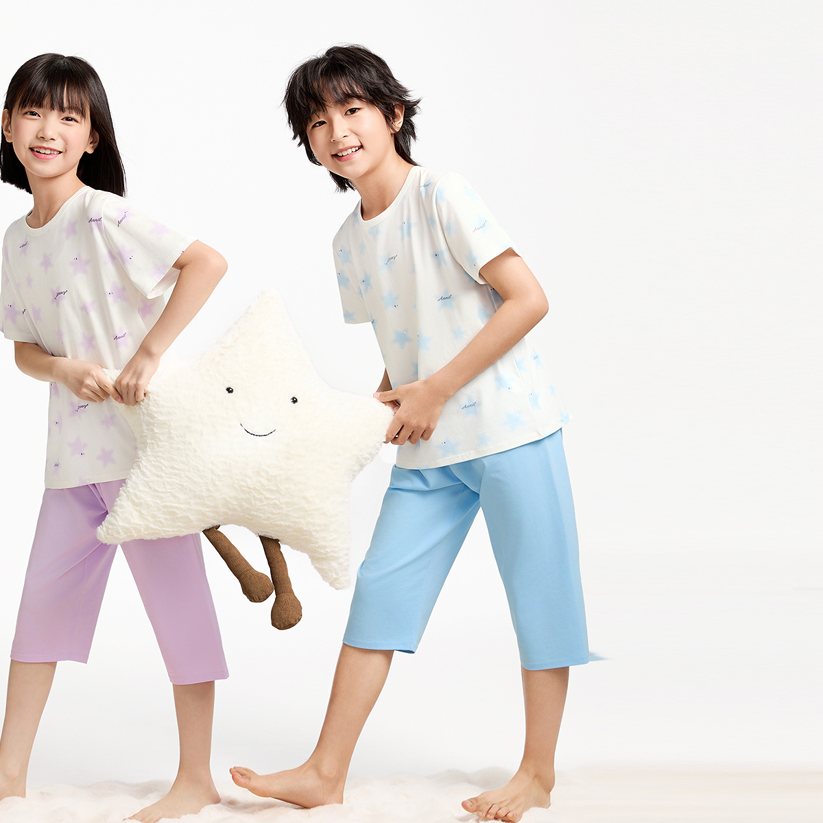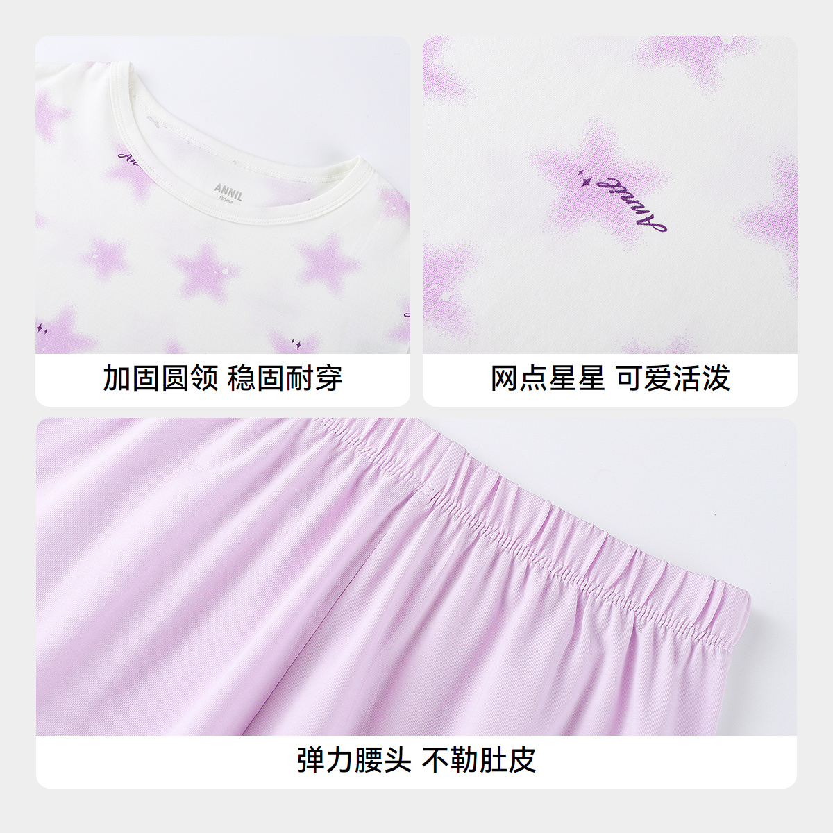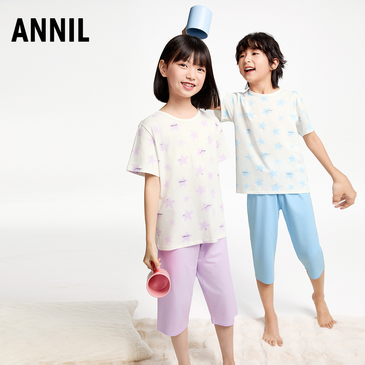 安奈儿男女童装圆领短袖七分裤家居服户外套装2025夏季新款睡衣裤