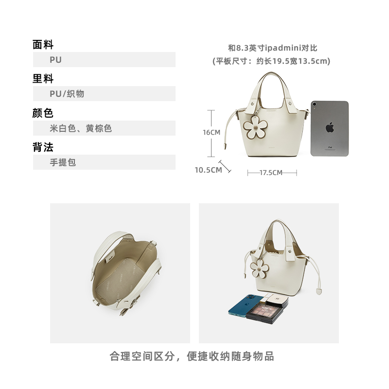 Josiny/卓诗尼2024新款大容量水桶包百搭单肩斜挎包轻奢手提包