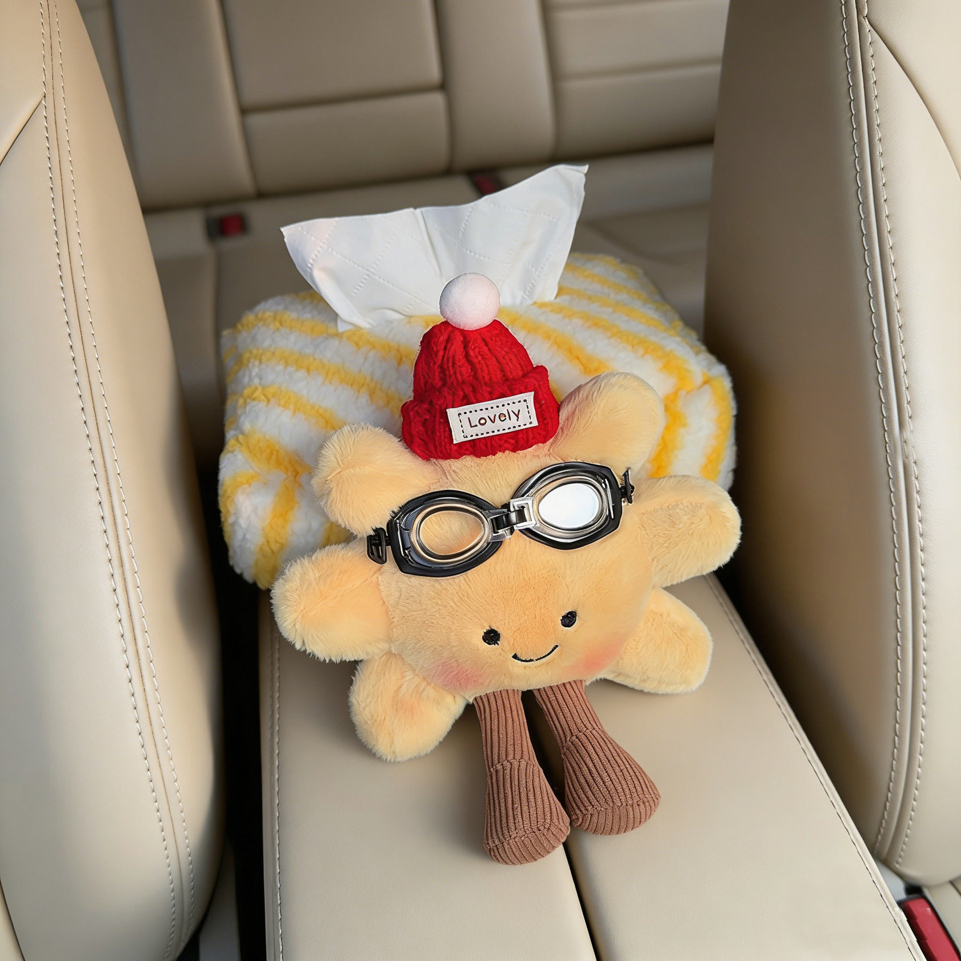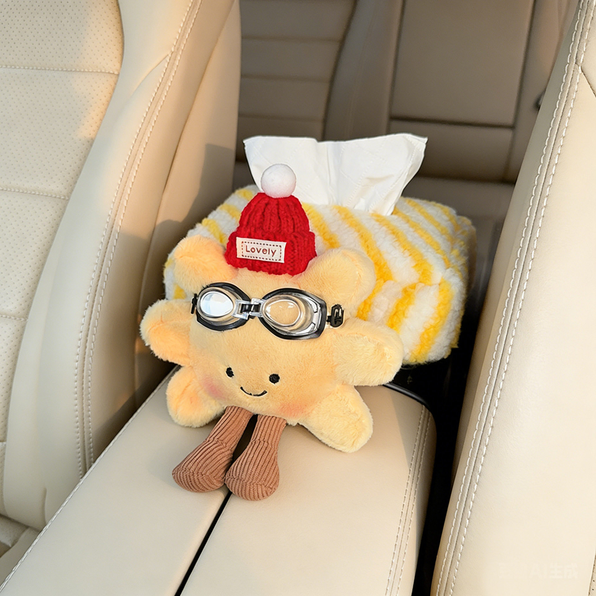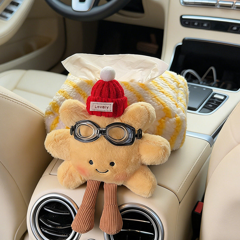 毛绒太阳花车载纸巾盒汽车扶手箱纸巾包车内抽纸盒汽车纸巾包创意