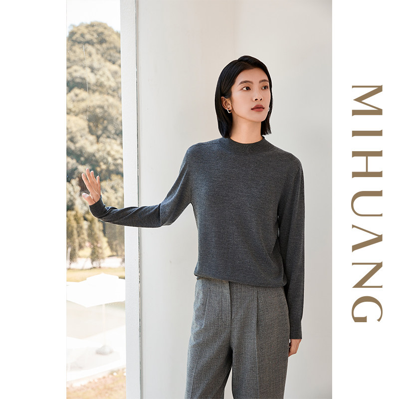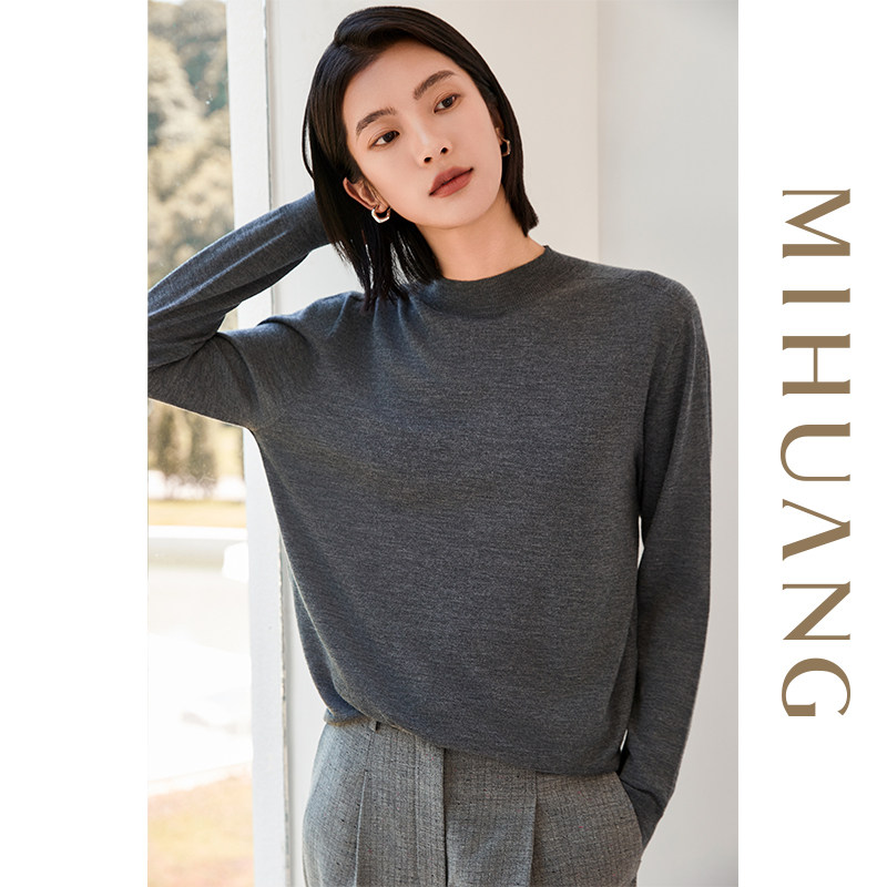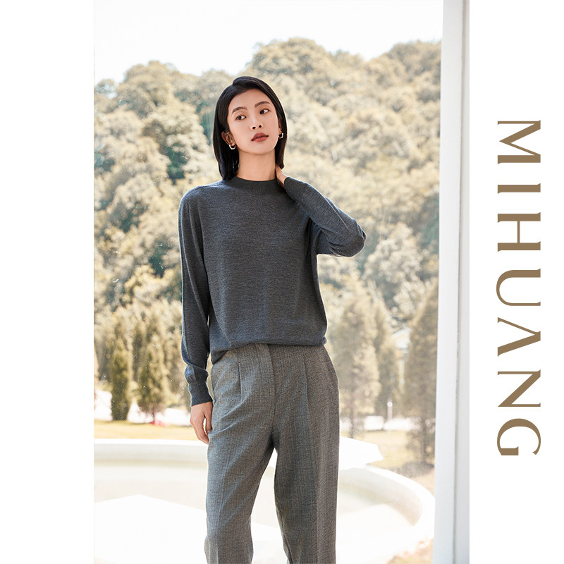 [商场同款]米皇2025秋冬新款圆领羊绒衫女通勤百搭精纺纯羊绒毛衣