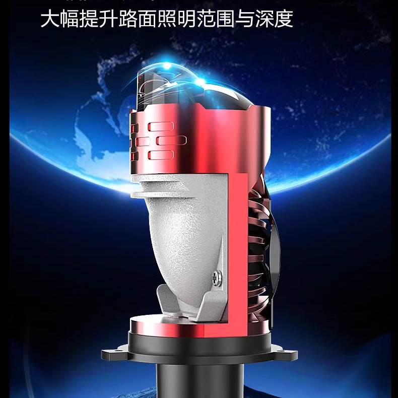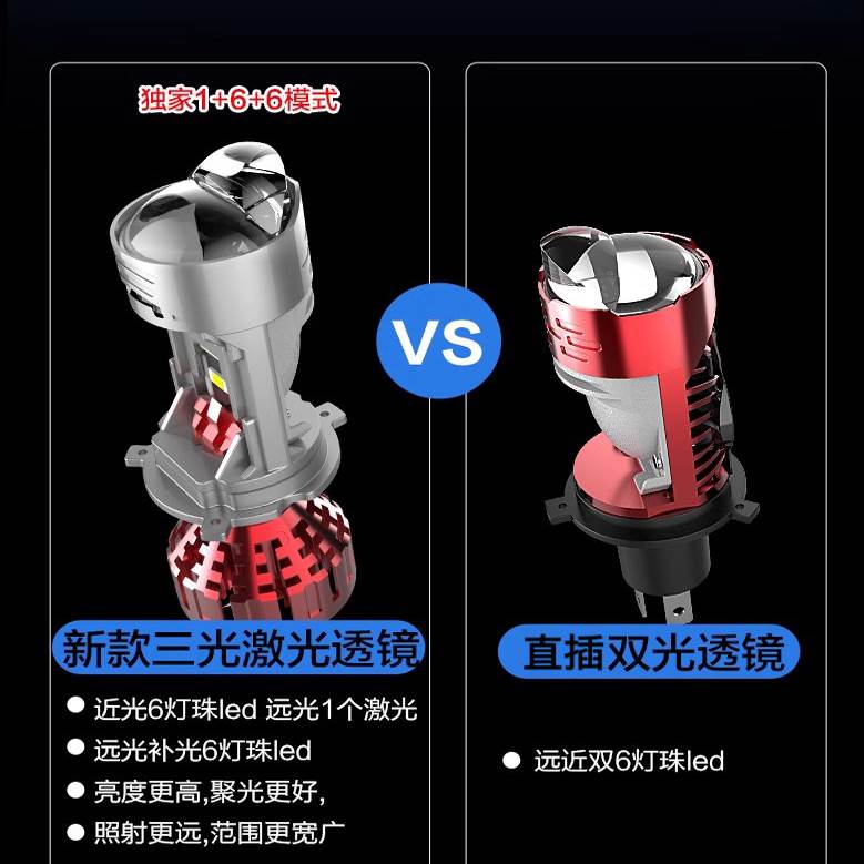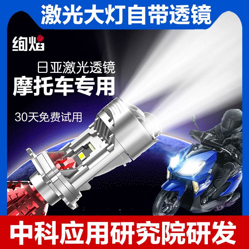 摩托车LED激光矩阵大灯自带透镜远近光一体改装H4三爪灯泡超亮