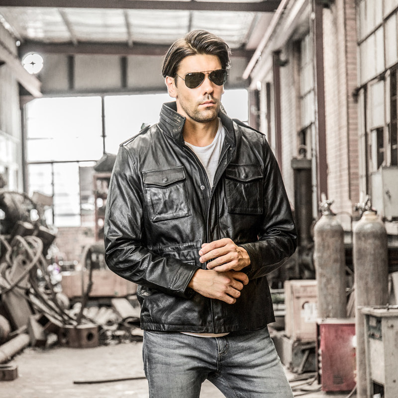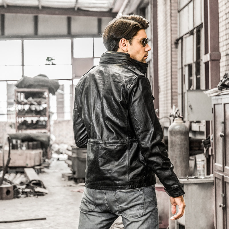 真皮猎装 男 头层牛皮立领简约M65真皮皮衣 休闲商务真皮夹克