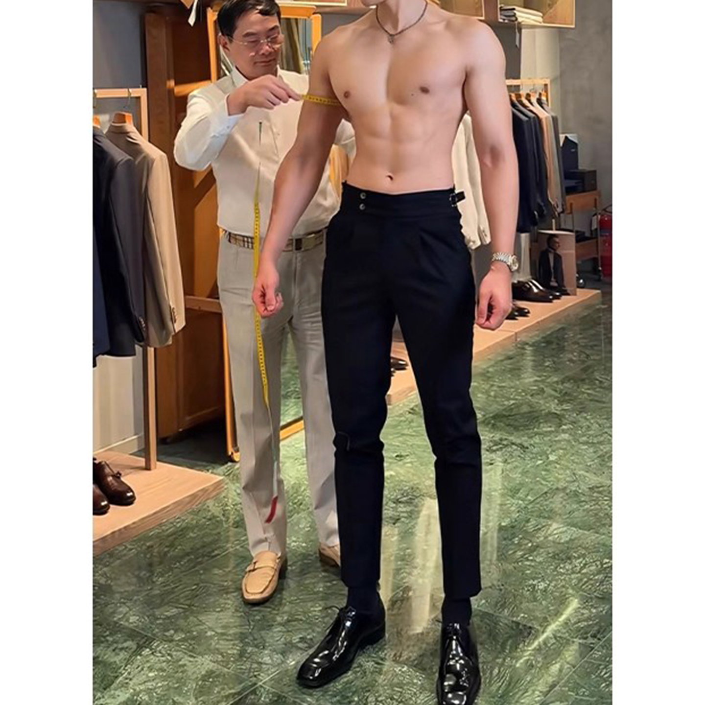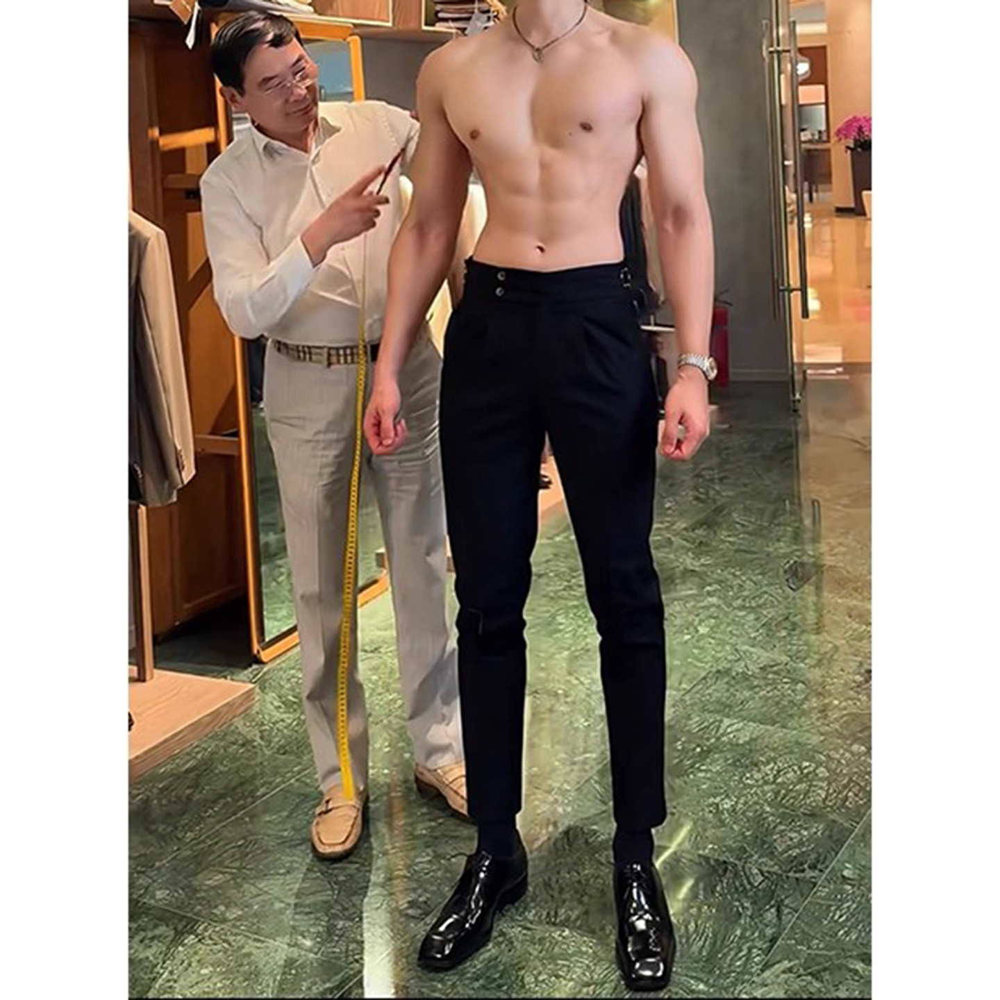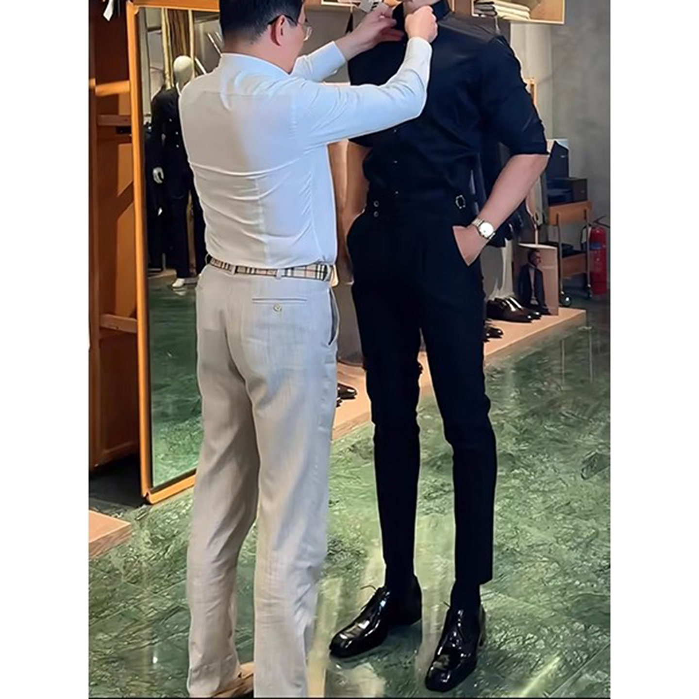 黑色那不勒斯高腰修身西裤男士商务正装裤子双腰头小脚休闲西装裤