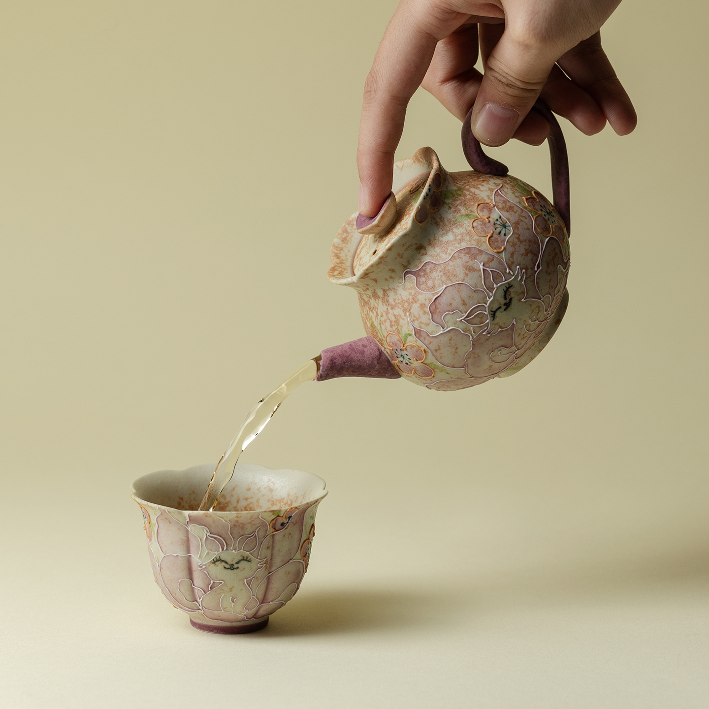 无落火石红纯手绘九尾仙狐陶瓷茶壶一壶一杯泡茶器新中式功夫茶具