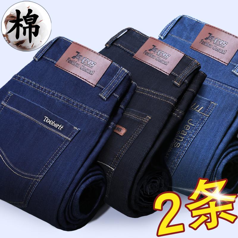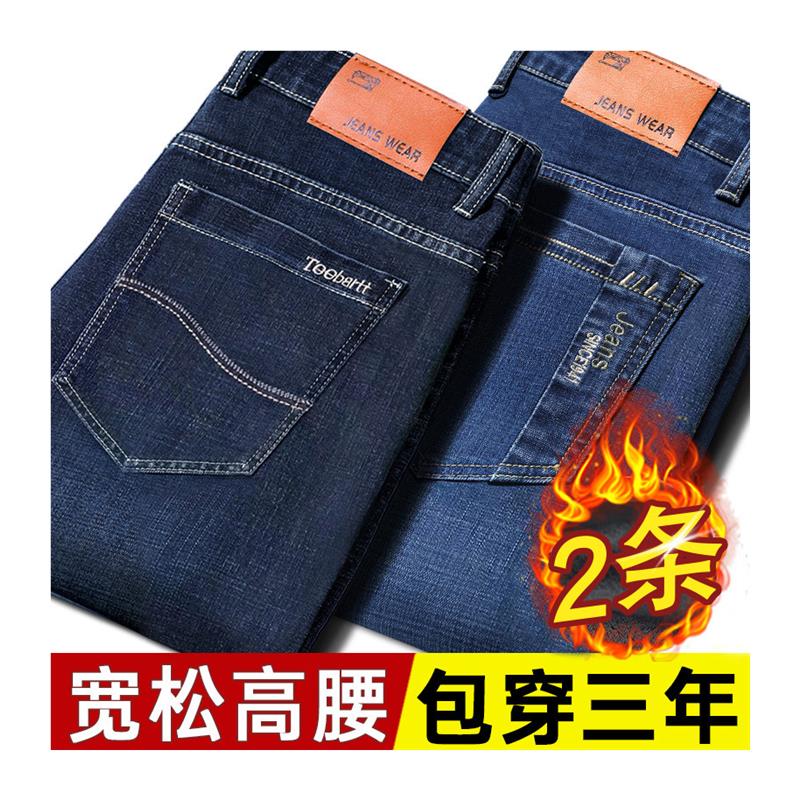 牛仔裤男春秋季2024新款宽松直筒中年爸爸加绒加厚秋冬款男士裤子
