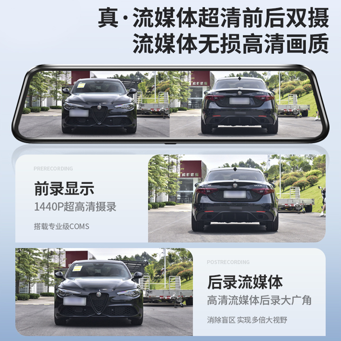 森导12寸流媒体行车记录仪2025年新款4K超高清前后双录电子狗播报