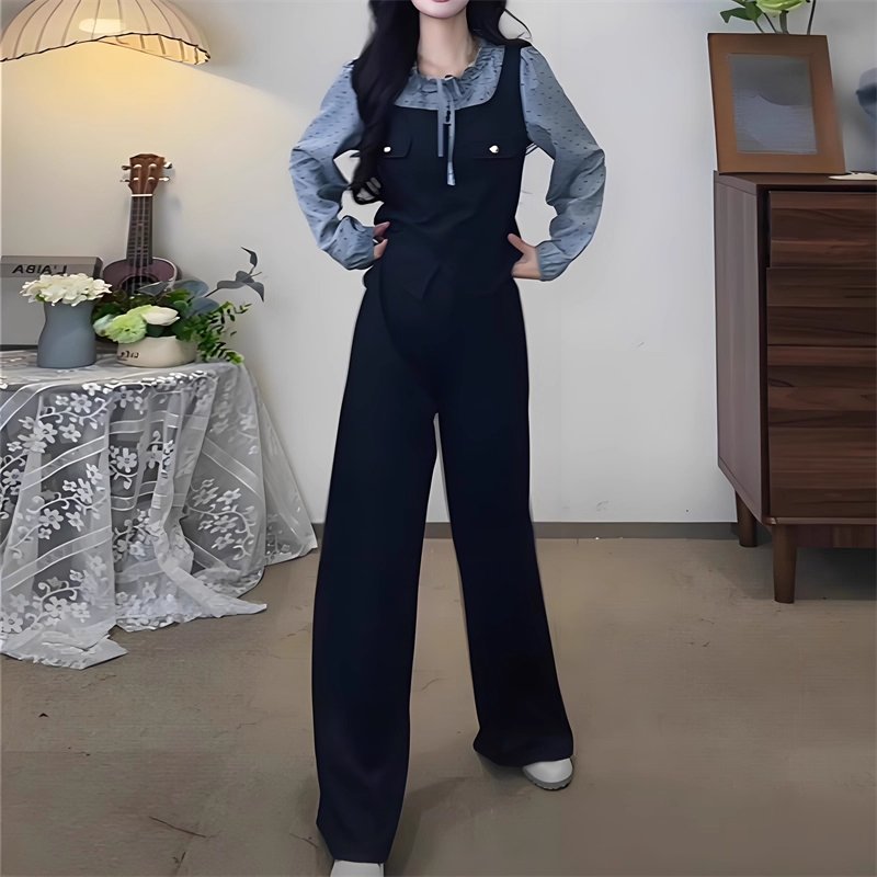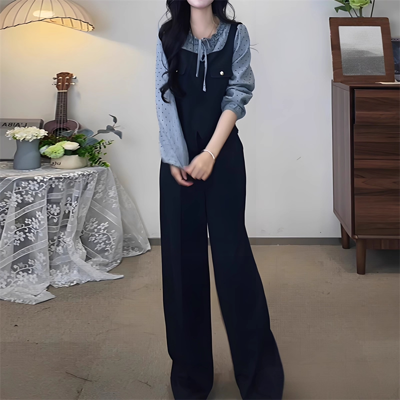 今年流行韩系套装女2025秋季新款时尚波点假两件衬衫阔腿裤两件套