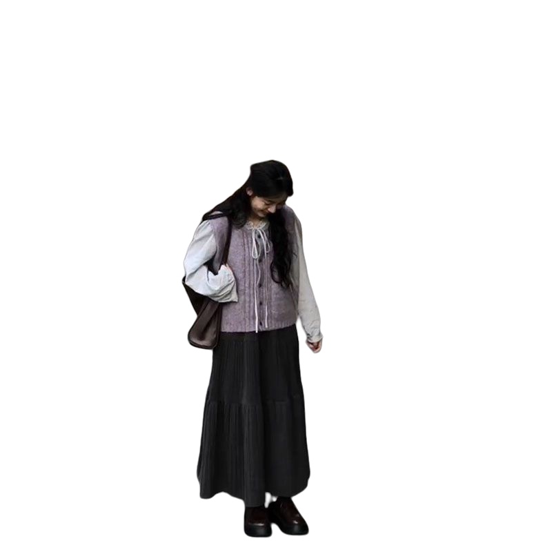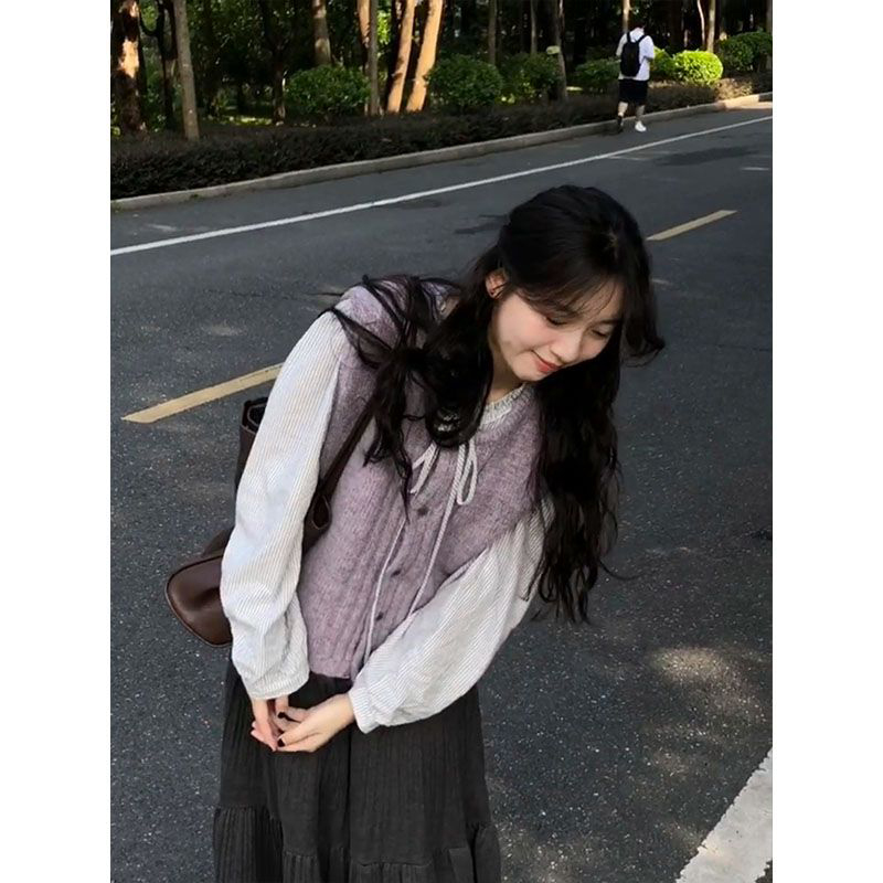 针织马甲背心女叠穿衬衫高腰长裙