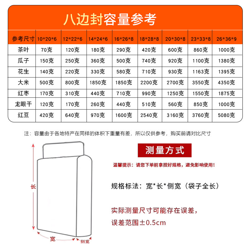 八边封自立袋透明食品包装袋杂粮自封袋花茶叶加厚密封红枣塑料袋