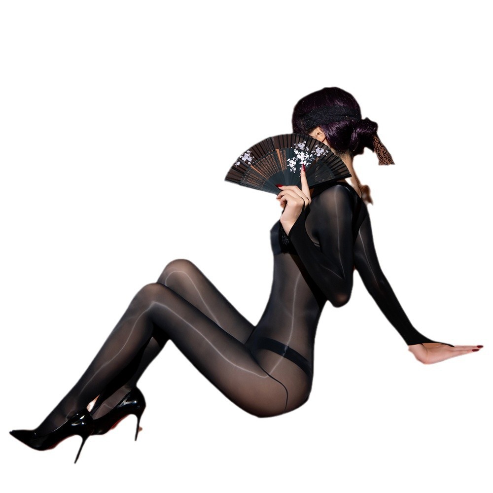 性感大码CD伪娘全身油亮胸无缝马油袜大佬油光连体丝袜五趾紧身衣