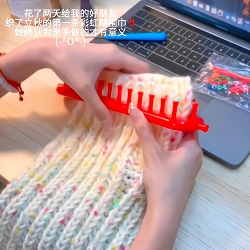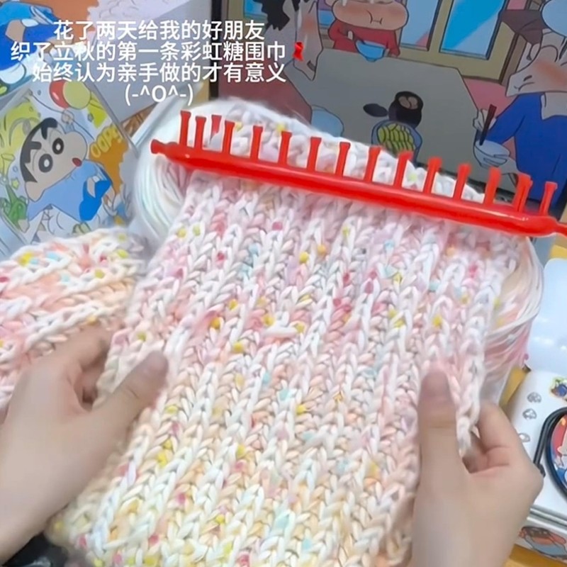 彩虹渐变围巾毛线手工diy送闺蜜送男友礼物材料包围脖手织编织冬
