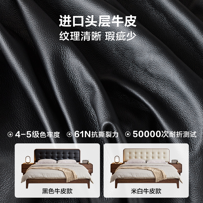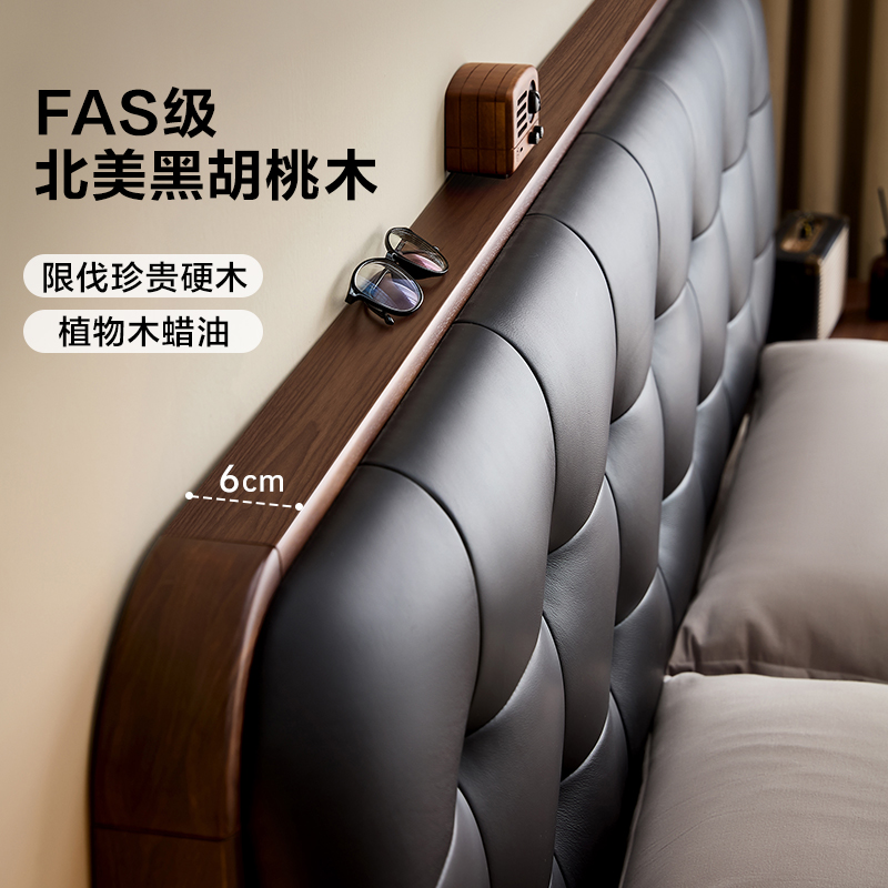 全友家居黑胡桃木实木像素床1米8双人床中古风主卧室软包真皮床