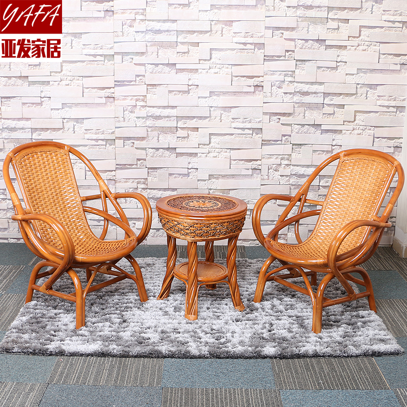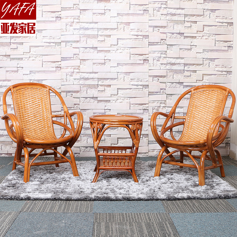藤椅茶几三件套真藤阳台休闲桌椅组合单人老人靠背椅适老腾椅家用
