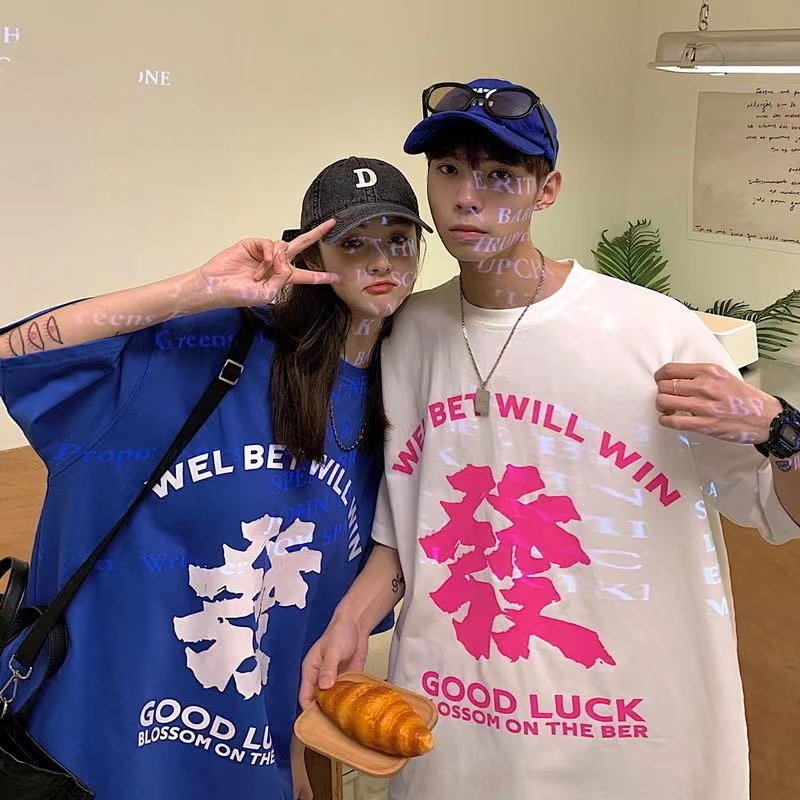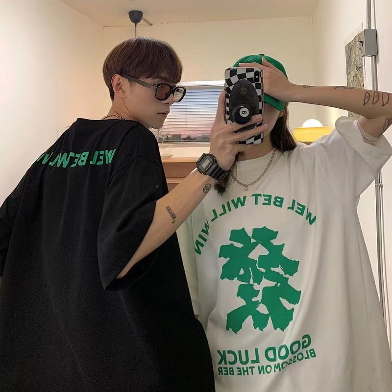 加肥加大码300斤宽松正肩短袖t恤男女夏季新款港风学生情侣体恤衫