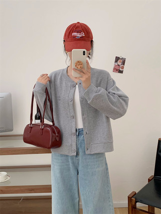 秋季纯棉宽松简约棒球服外套女春秋2025新款休闲百搭开衫薄款卫衣