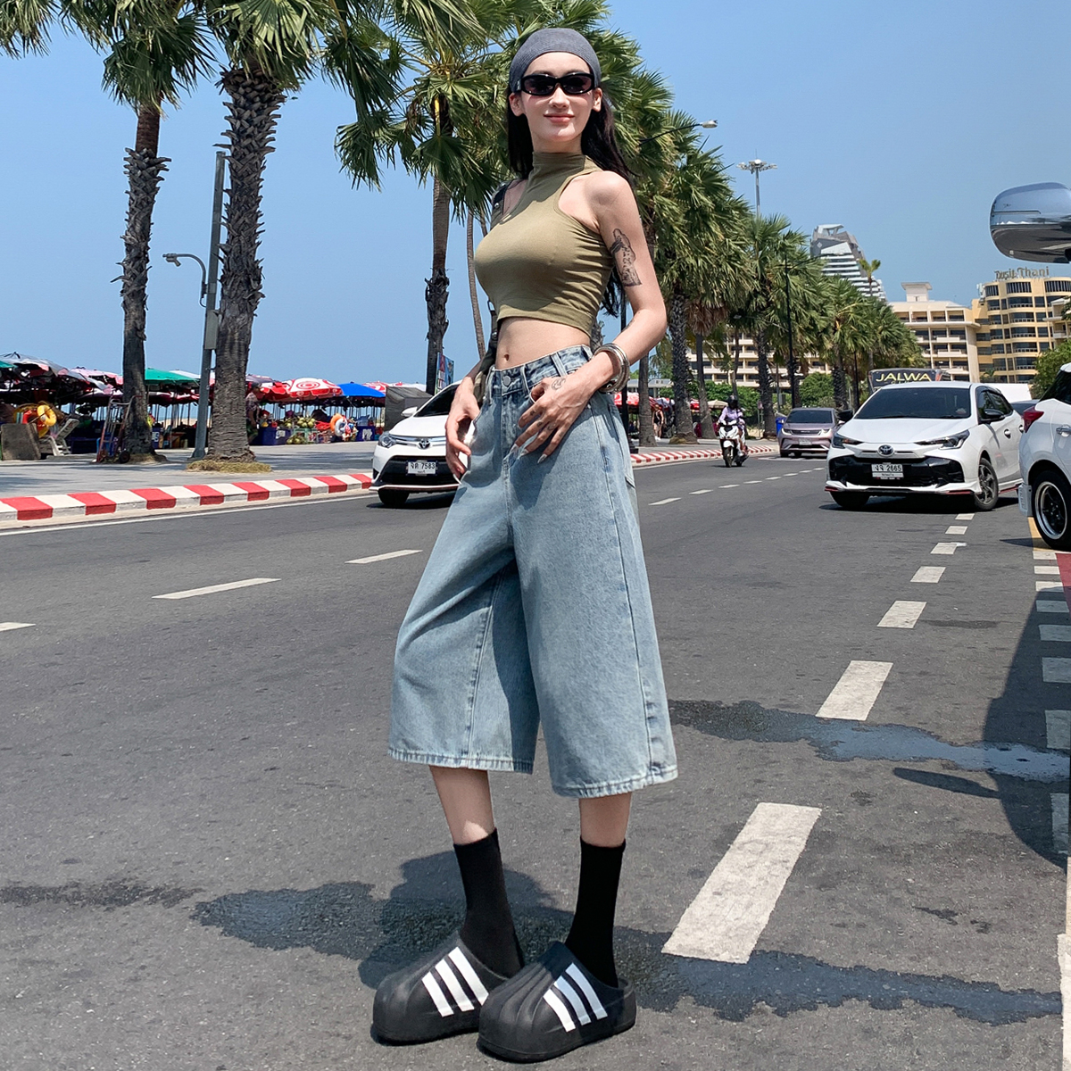 美式复古阔腿牛仔七分裤女2025夏
