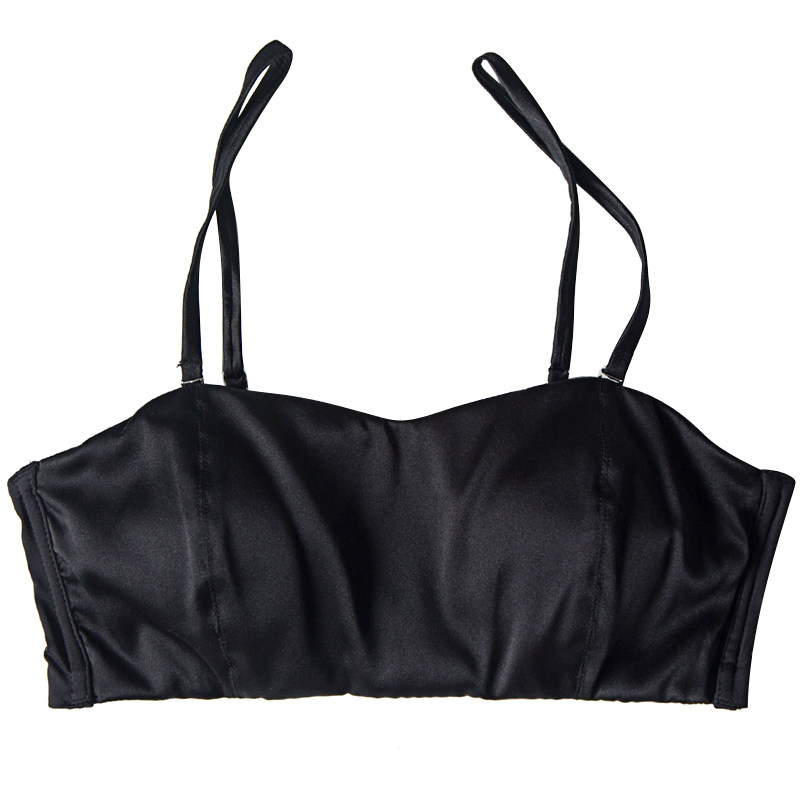 夏新女真丝无钢圈抹胸文胸薄款桑蚕丝缎面胸罩可拆卸肩带胸垫内衣