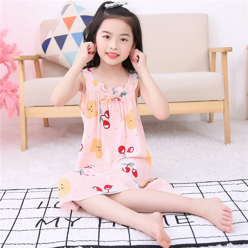 儿童睡裙无袖夏季女童装棉绸裙子宝宝薄款公主裙小女孩睡衣家居服