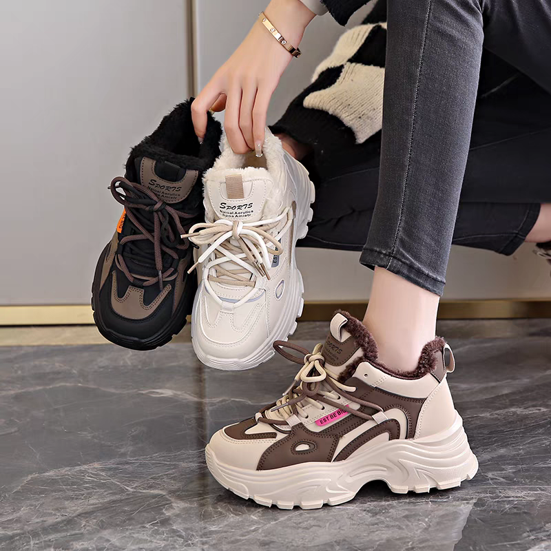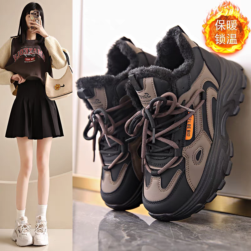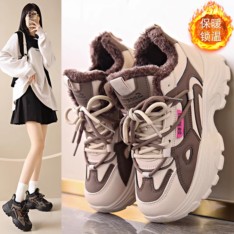 意尔康品牌踩屎感加绒老爹鞋女2025新款冬季厚底运动鞋时尚休闲棉