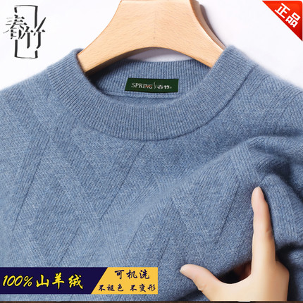 正品春竹100%纯山羊绒衫男宽松半高领双股加厚针织打底衫爆款特价