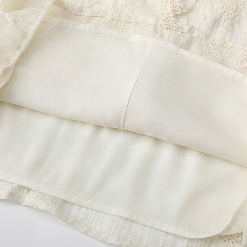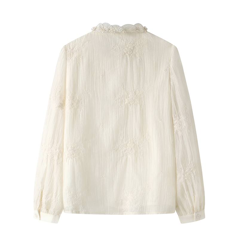影系の2025秋季新款高级感设计木耳边立领刺绣米色长袖衬衫女上衣