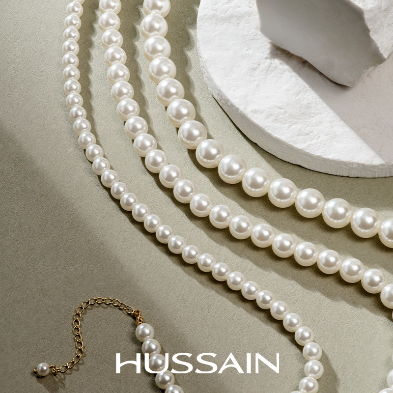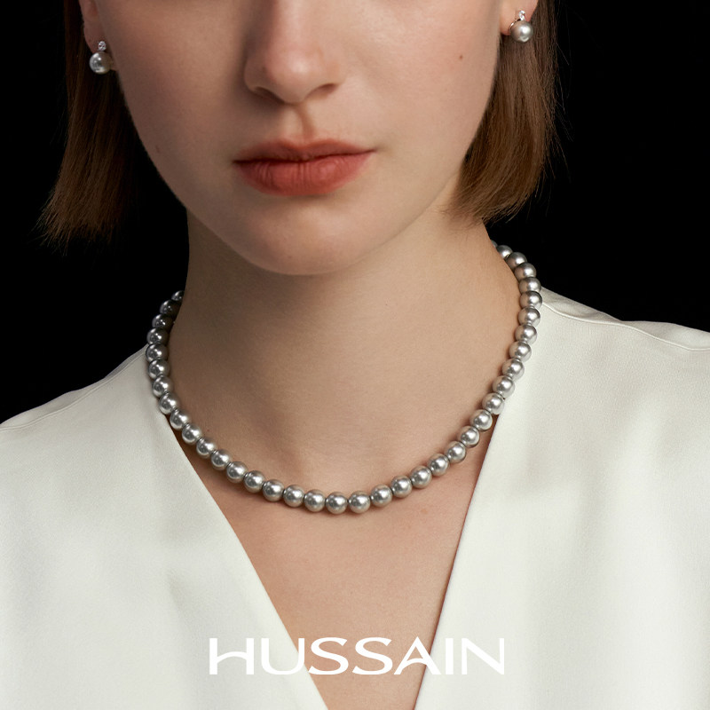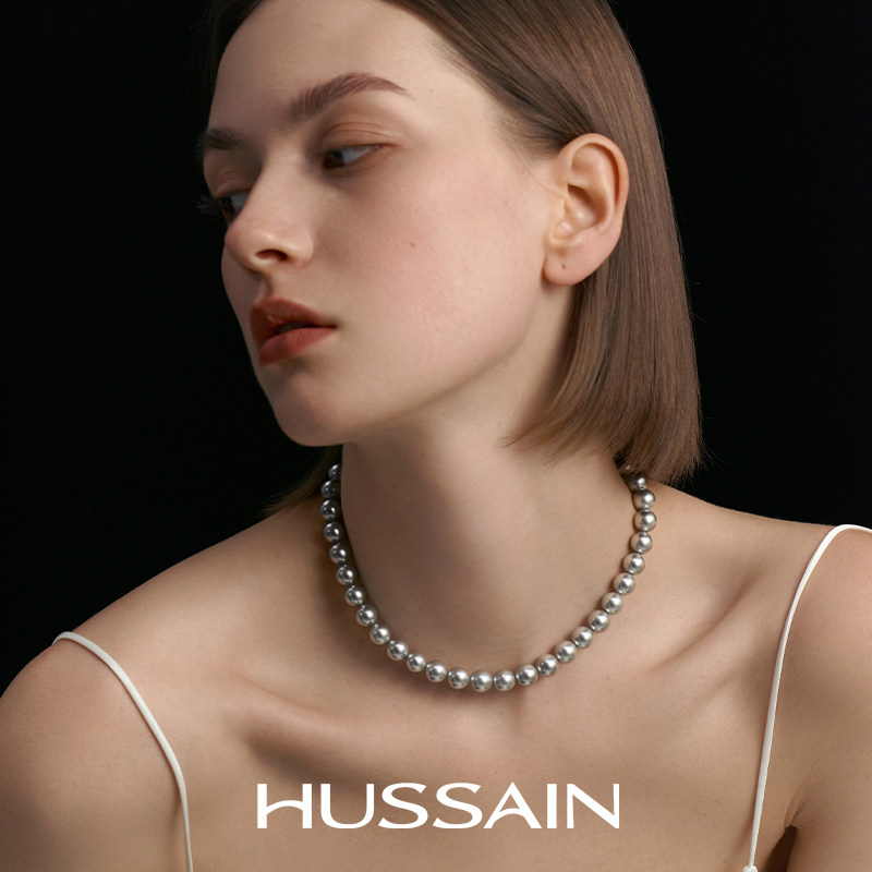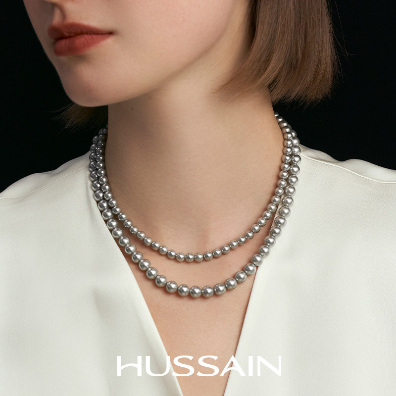 赫生HUSSAIN皎色倪妮同款真多麻色灰珍珠项链妈妈颈链满串锁骨链