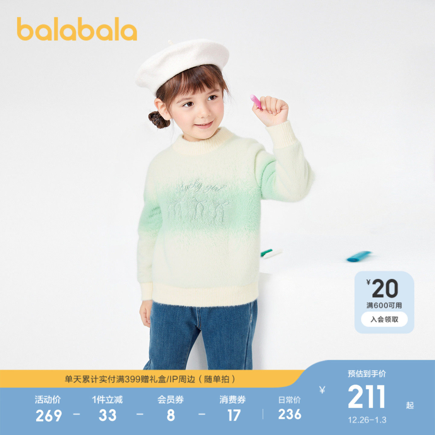 【商场同款】巴拉巴拉童装女童毛衣儿童2025冬新款毛衫套头针织衫