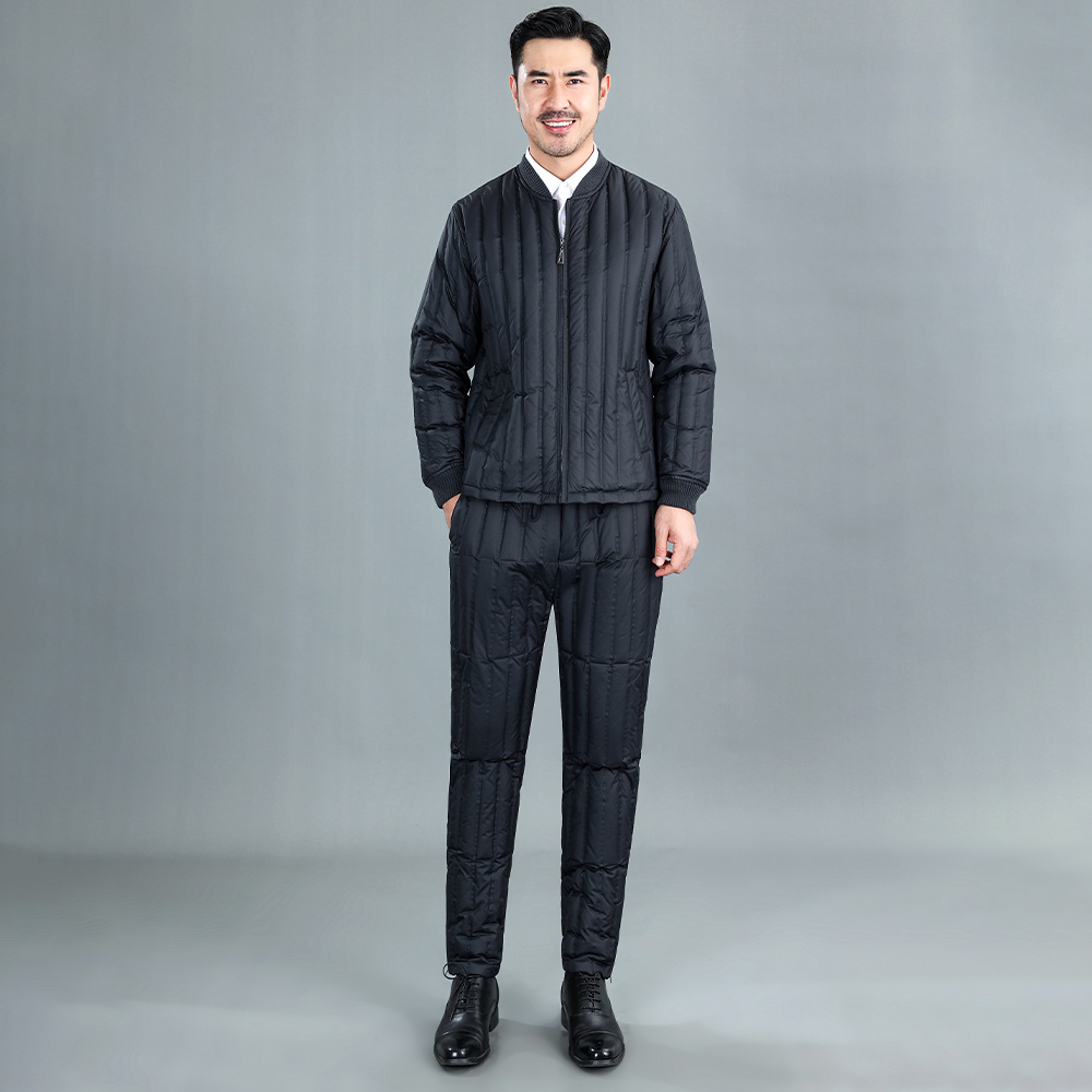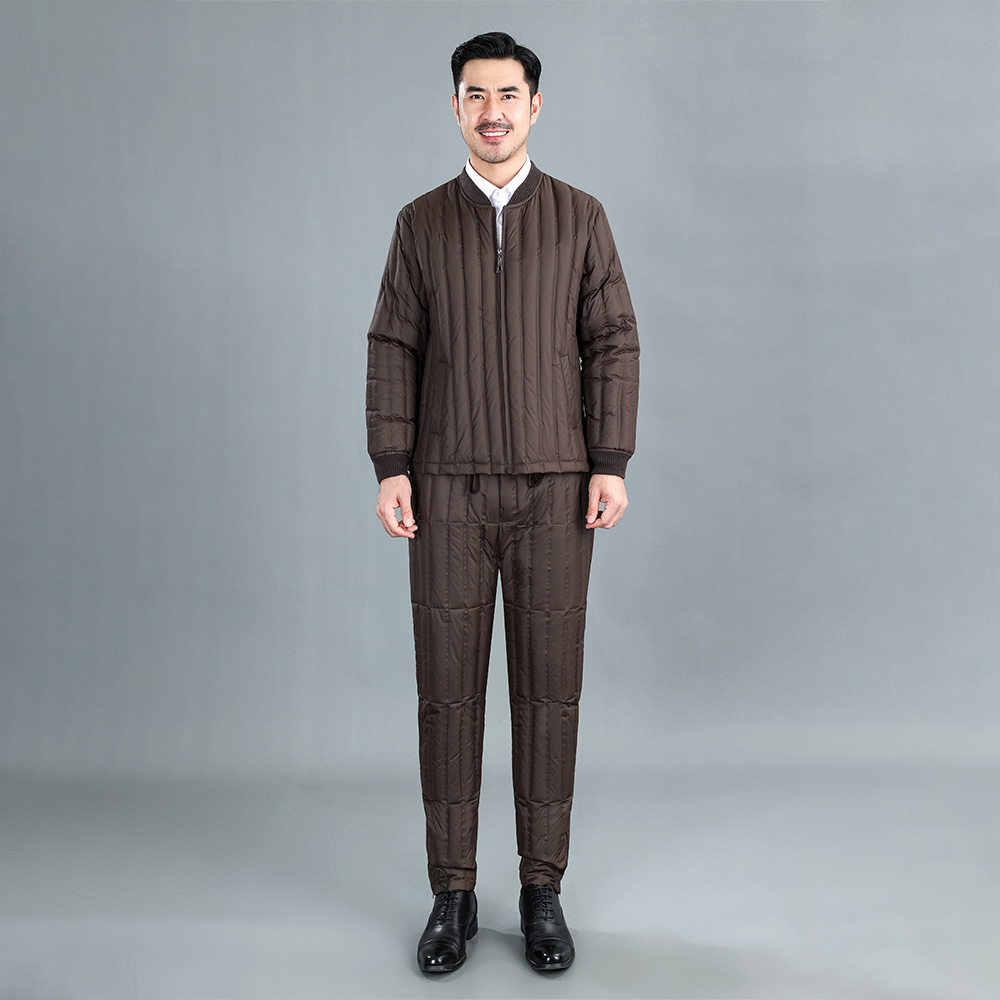 男羽绒服内胆上衣中老年爸爸装轻薄白鸭绒棉服老人保暖套装俩件套
