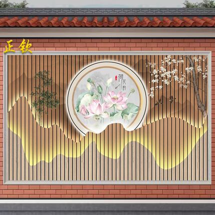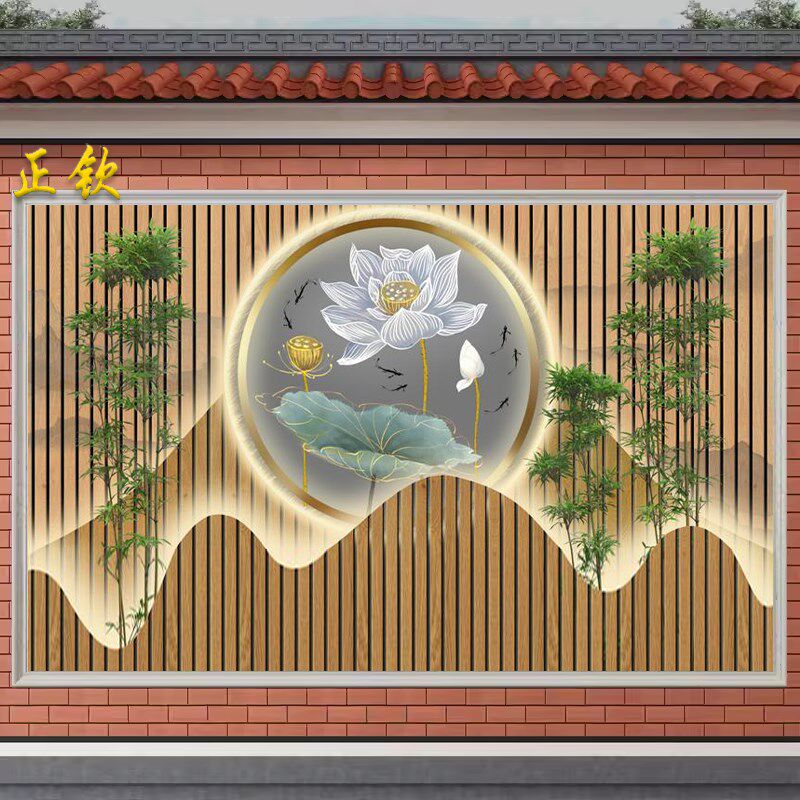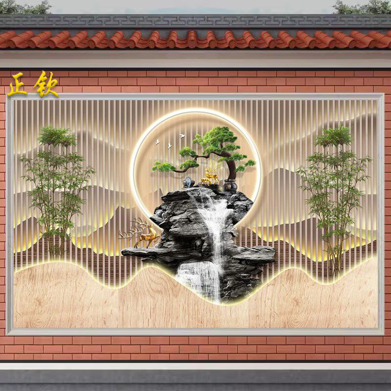 3d现代简约别墅迎门墙壁画户外瓷砖背景墙新中式庭院照壁墙装饰画