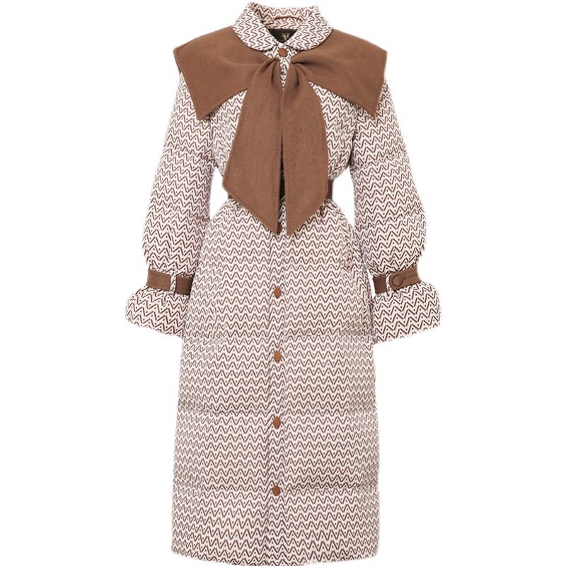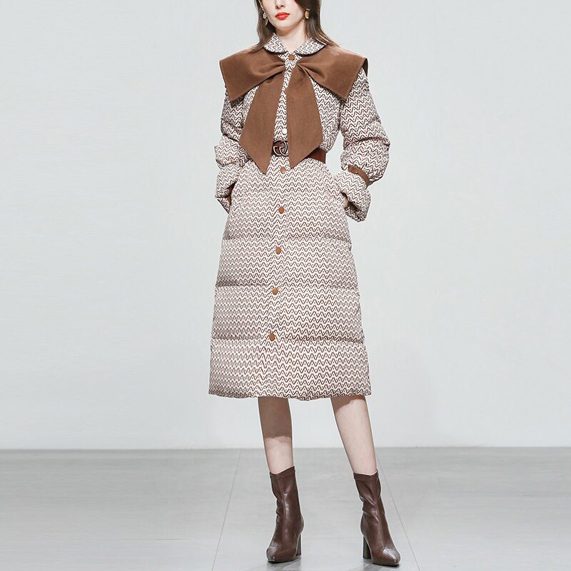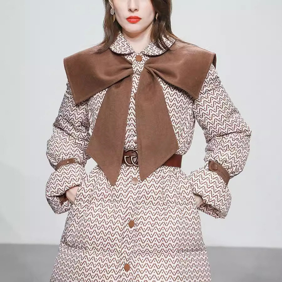 冬季新款时尚气质披肩设计感印花收腰a摆加厚白鸭绒羽绒服女