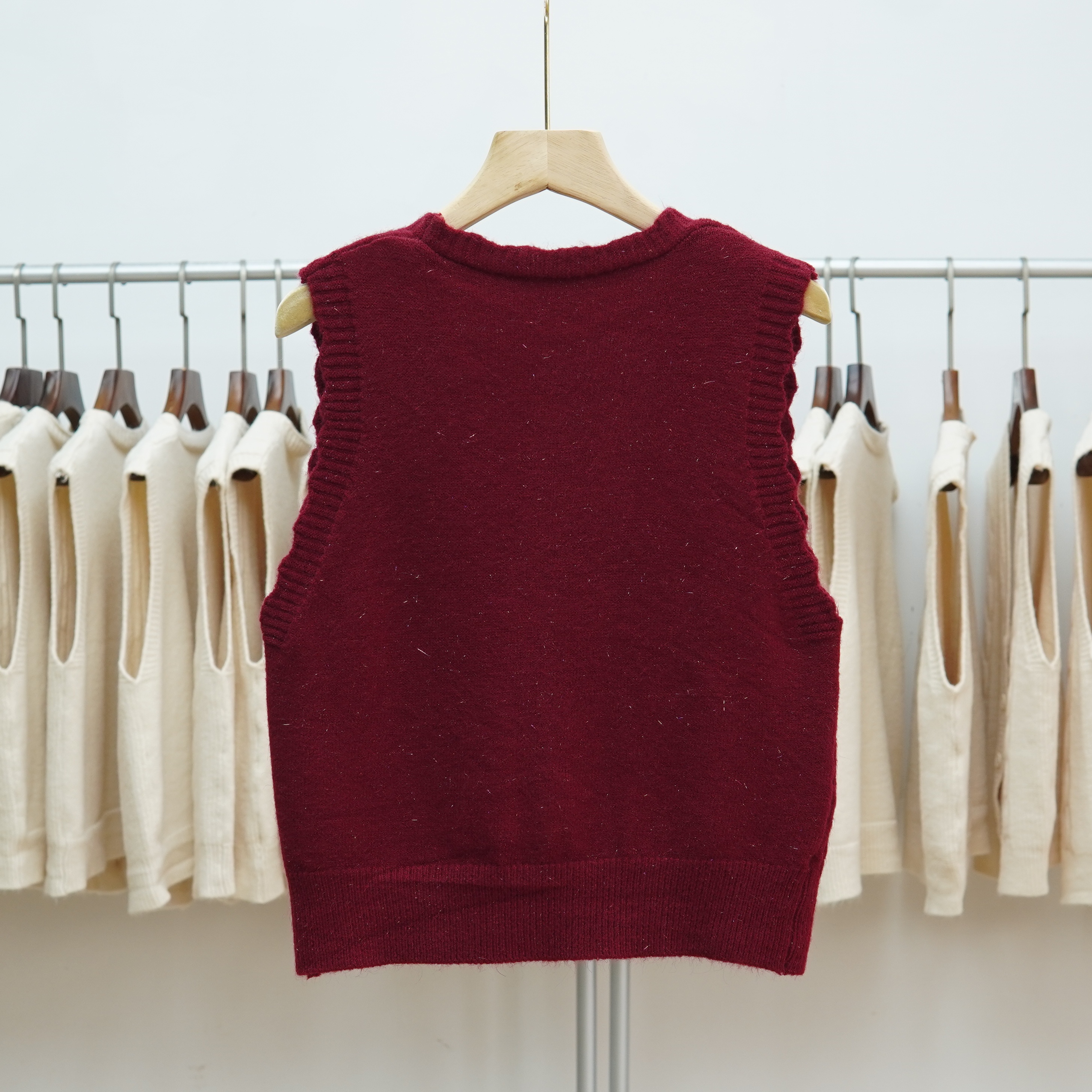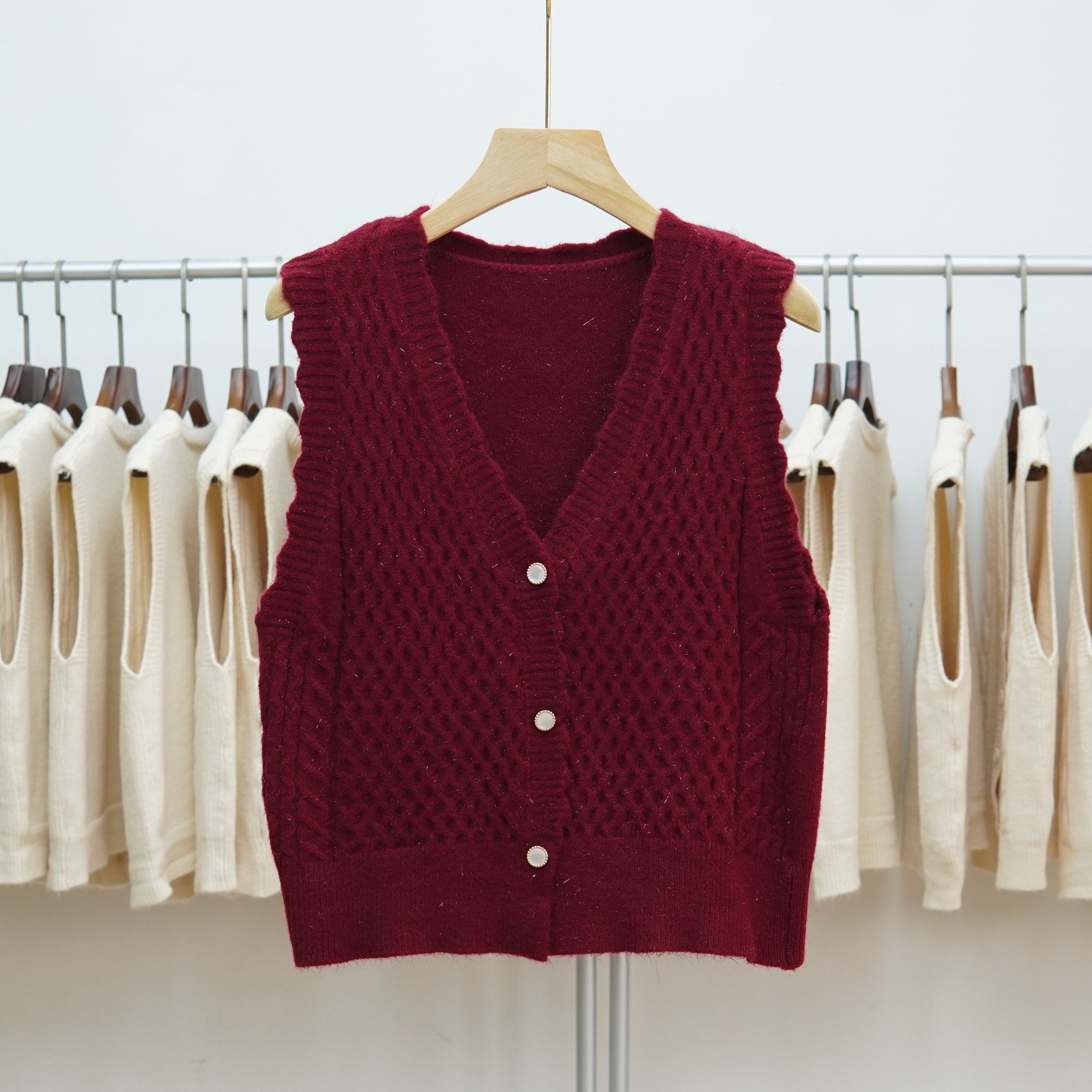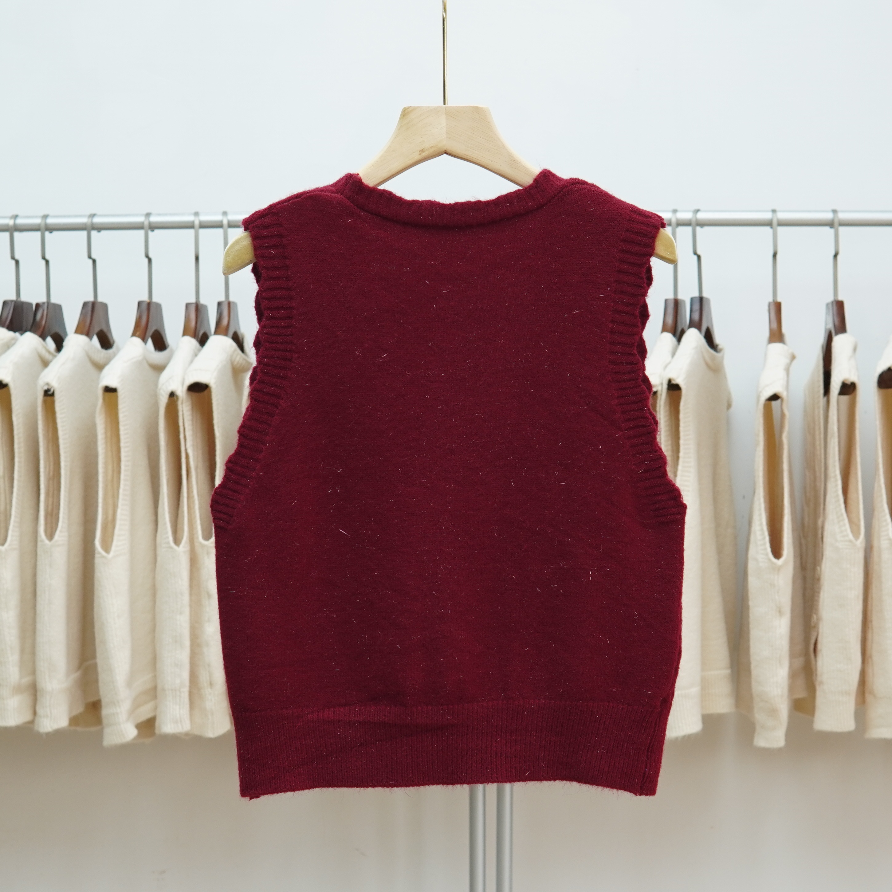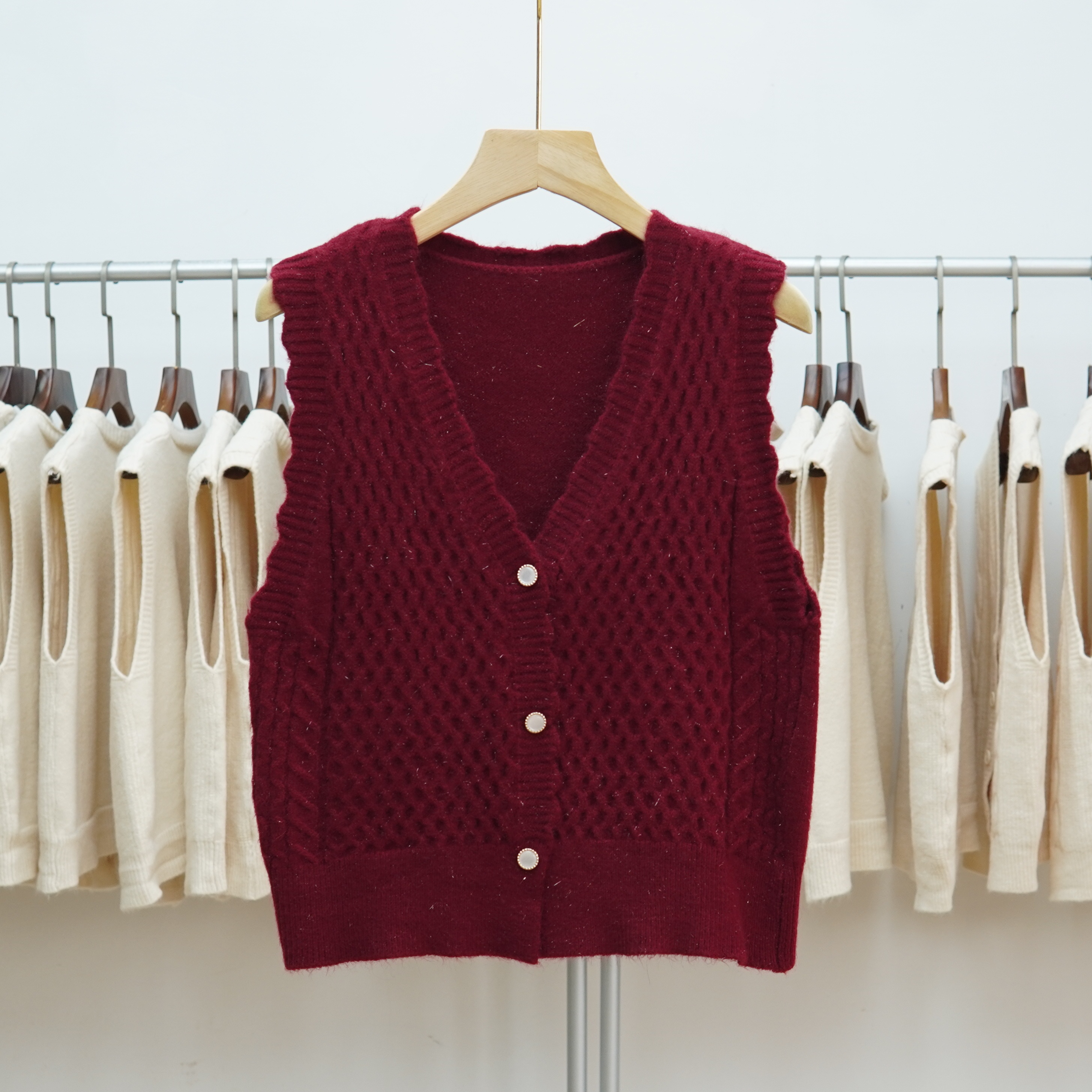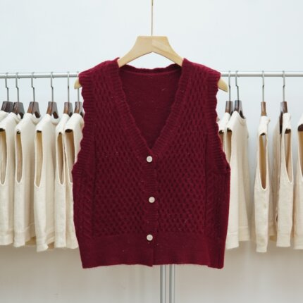 短款V领针织马甲背心女